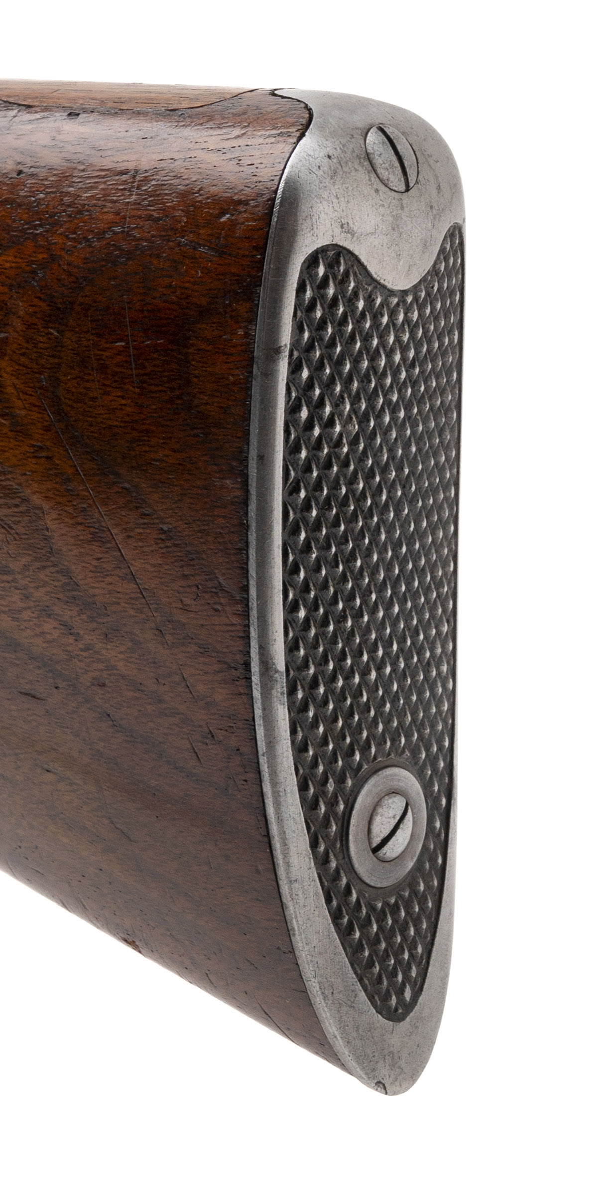 Serial number 160095. Made in 1878. 32-40 caliber with a 32” barrel. This gun is in excellent condition as customized by Denver gunsmith George Schoyen. The barrel has excellent original blue on the George Schoyen barrel. The frame has 90% of the original sharps case colors. This gun has period custom wood that was most likely was put on by schoyen. This gun has a Cataract Tool & Optical Company scope. This gun comes with a copy of a factory letter. This gun was shipped to Charles Stockbridge of Colorado Springs, Co. Some how it made its way to George Schoyen in Denver after that. This is a beautiful Sharps 1874 Target Rifle!