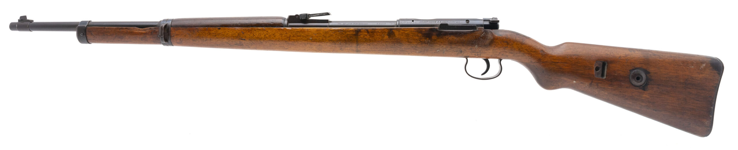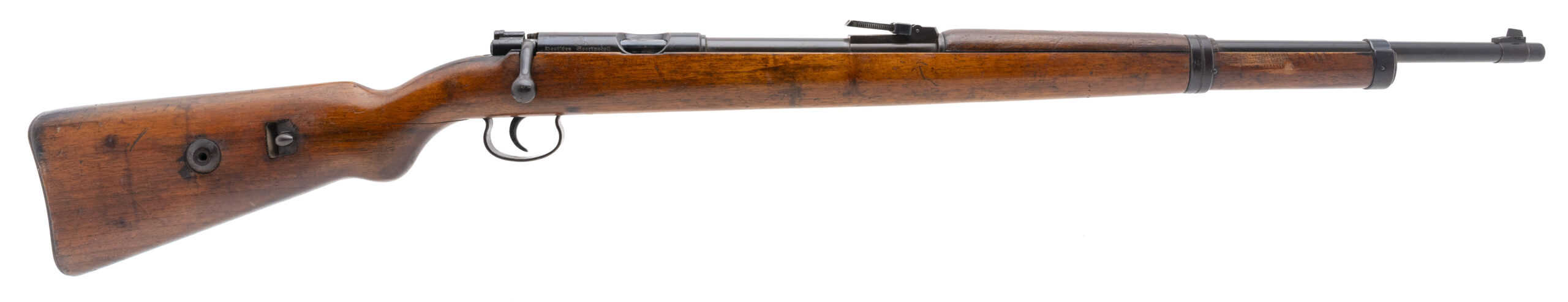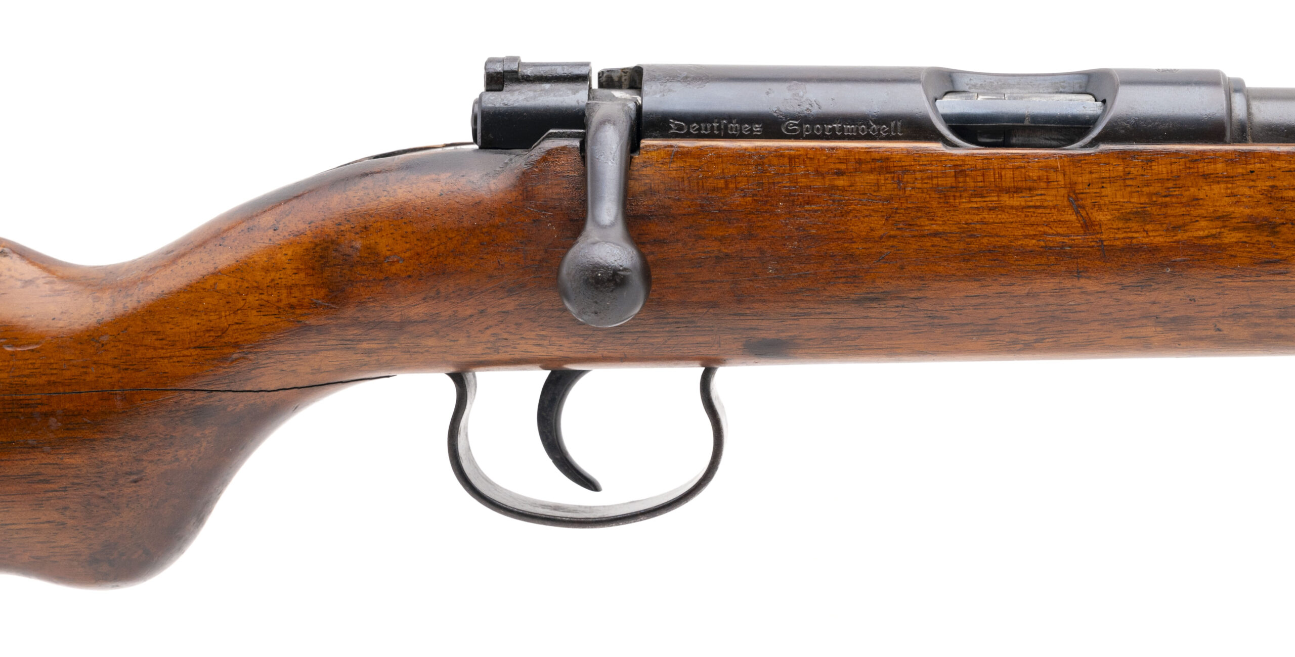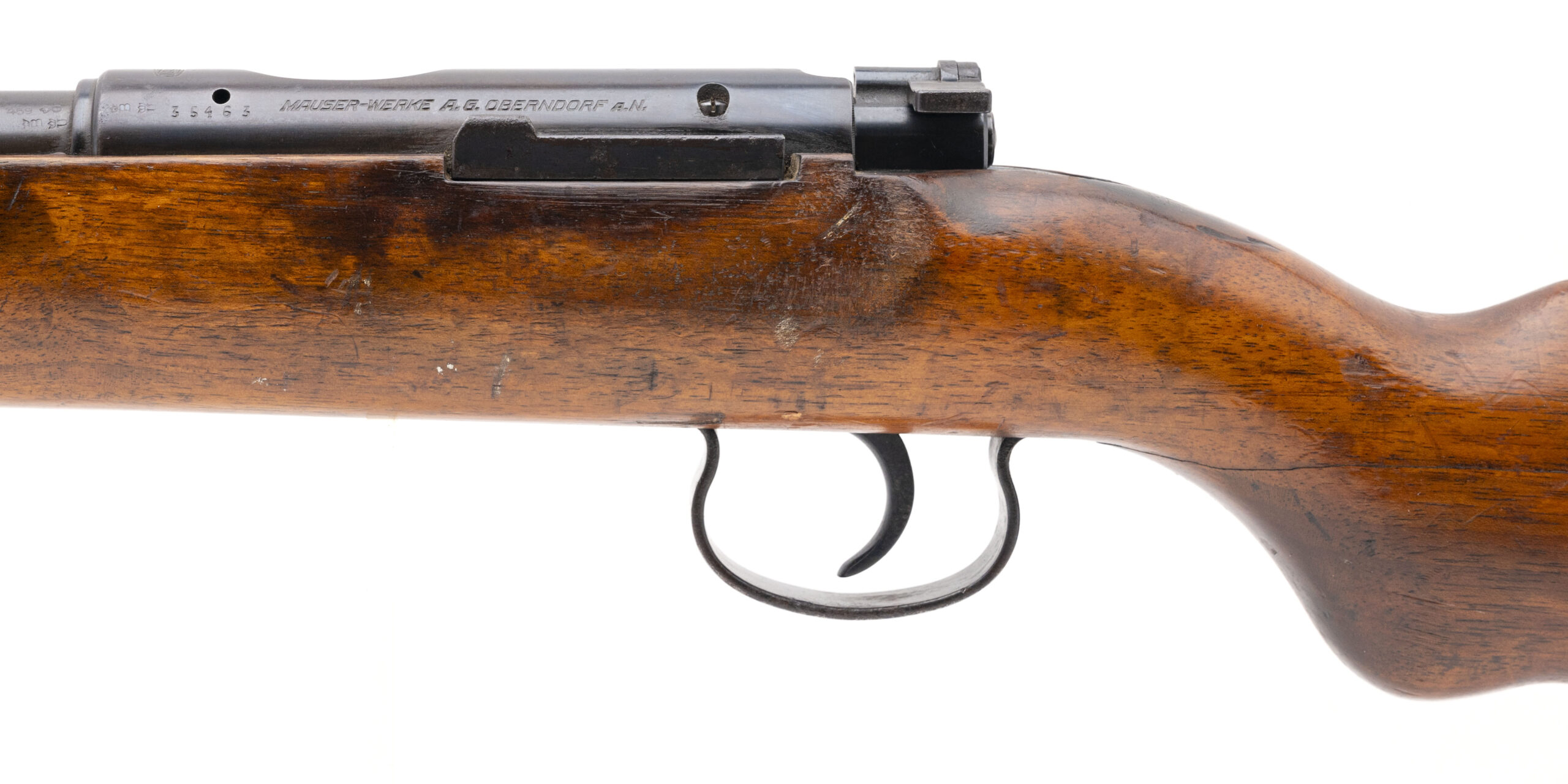 SN: 35463. Made at Mauser Oberndorf during the 1930s with a 26-inch barrel chambered for the .22LR cartridge. Overall excellent condition with a bright bore & original finish across the metal parts. There is one crack in the stock at the wrist, but it is otherwise in very good shape with only a few dings, dents & scratches. This DSM-34 single-shot rifle is marked "MAUSER-WERKE A.G. OBERNDORF A.N." on the left side of the receiver & "Deutsches Sportmodell" on the right side.