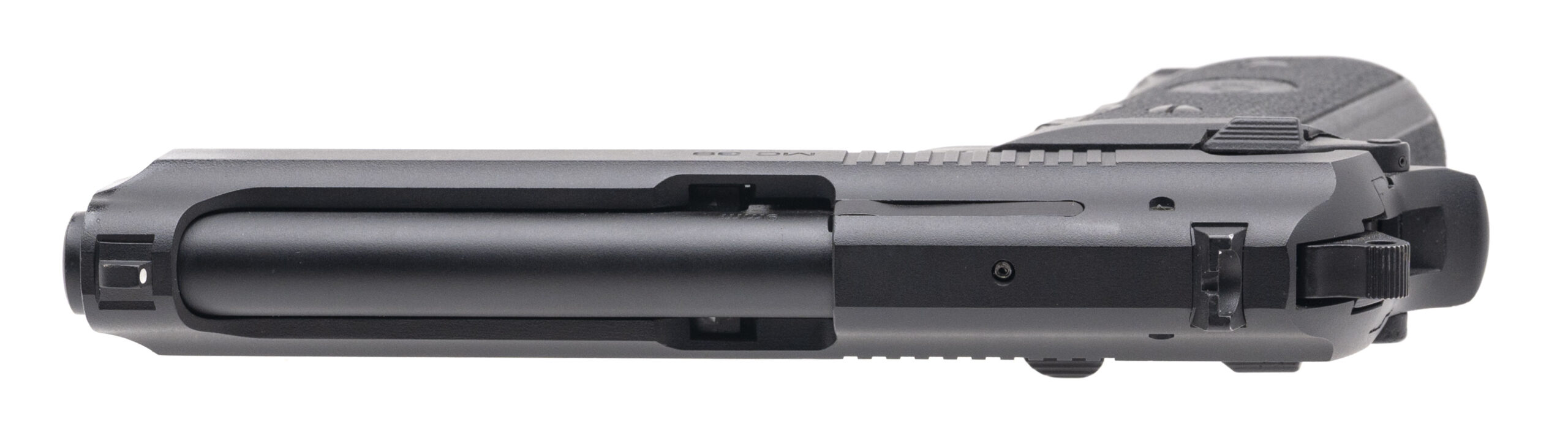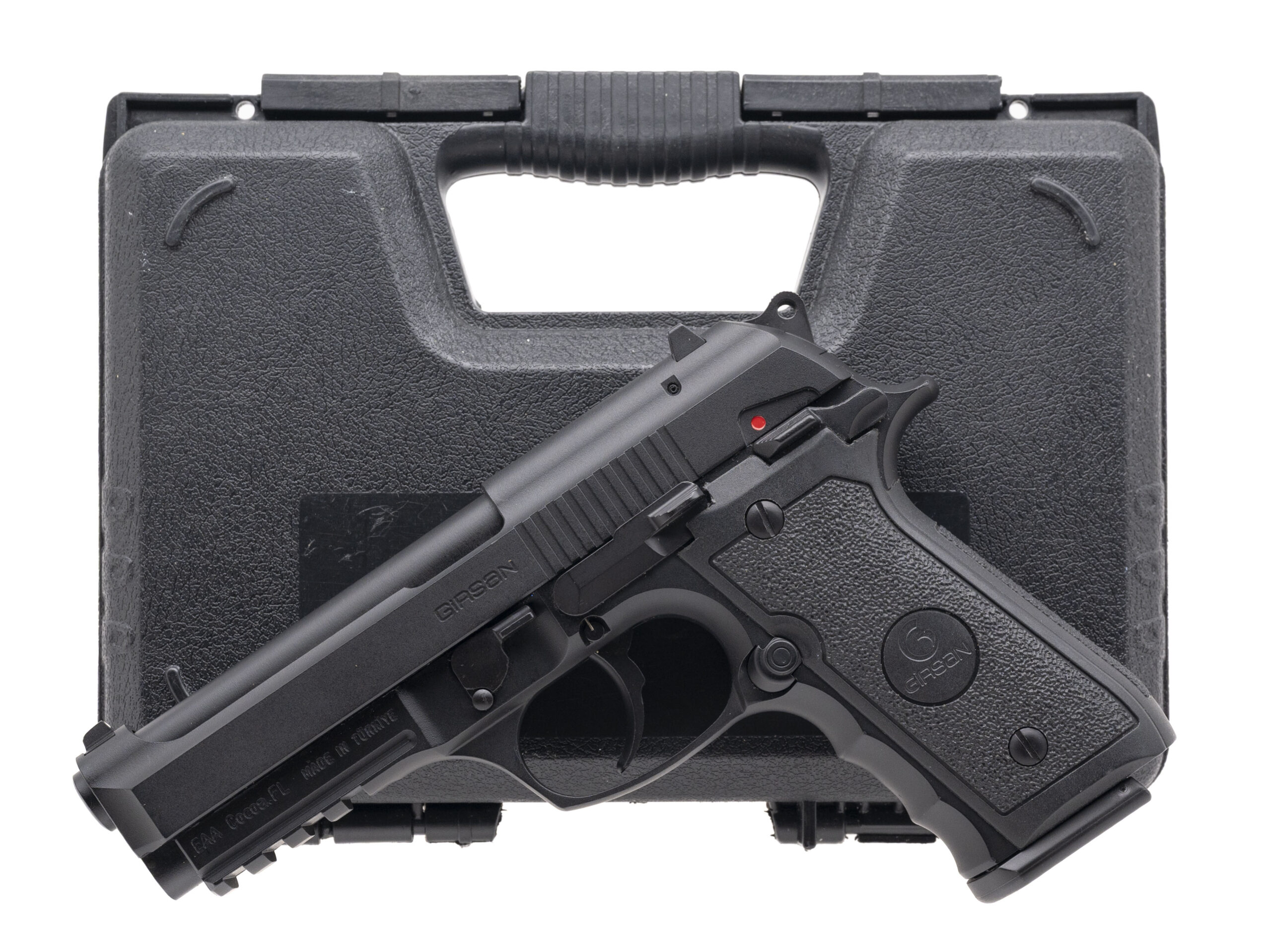 SN: T6368-23AH00291. Modern production, 9mm with a 4.9" barrel. Bore is very good. Turkish made full size double-action pistol with 3 dot sights, ambidextrous manual thumb-safety, accessory rail, and black plastic grips. Overall condition is excellent. Includes original case.