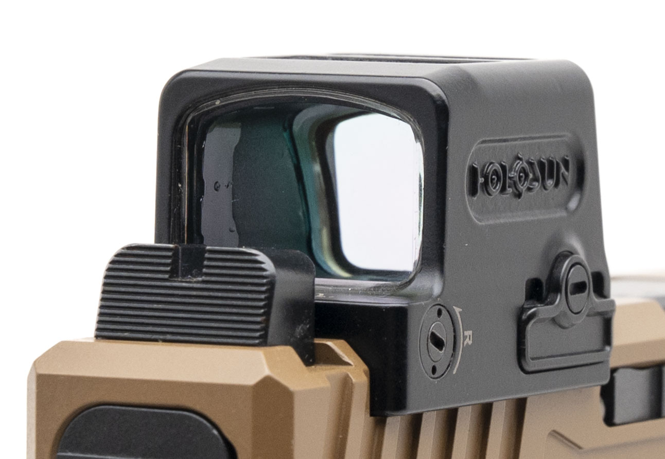 SN: CCBD405. Modern production, 9mm with an 4.02" barrel. Bore is bright with strong rifling. Compact striker fired pistol with an aftermarket slide w/lightning cut, Holosun 509T X2 green dot optic, and blacked out tall sights. Overall condition is excellent. Comes with case and two extra magazines.