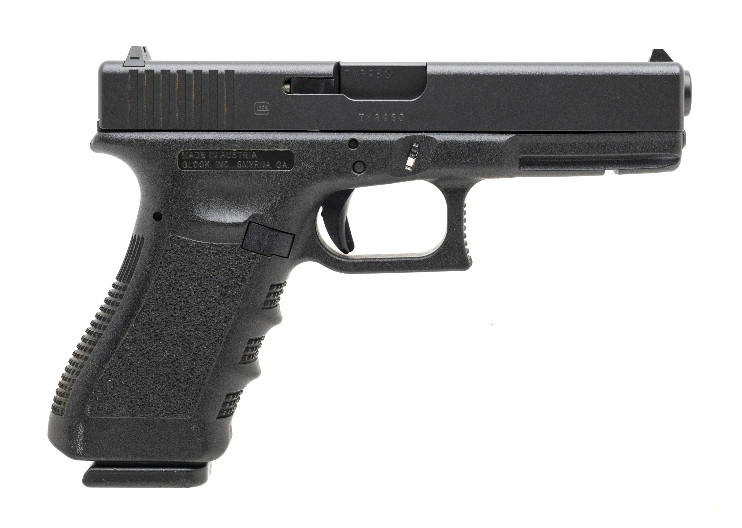 SN: TYR950. Modern production. .40 S&W with an 4.25" barrel. Bore is in excellent condition. Full size polymer frame pistol. Finish and grips are in excellent condition. Overall condition is excellent. Pistol comes with case and two extra magazines.