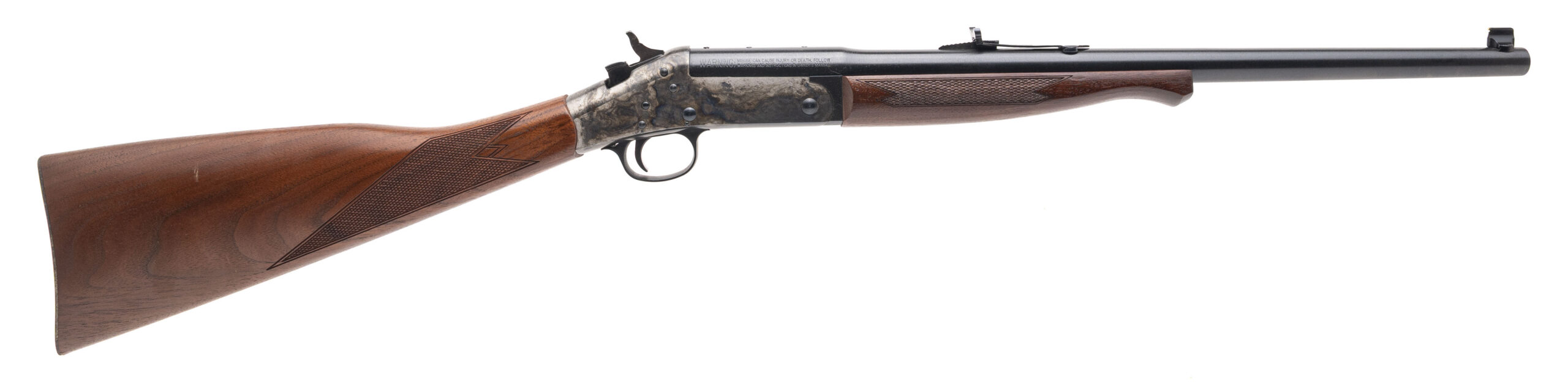 SN: HX251158. Modern production, .45 Colt with a 20" barrel. Bore is excellent. Single-shot rifle with a bead front sight, adjustable semi-buckhorn rear sight, color case hardened receiver, blue finished barrel, and checkered wood forend & stock. Finish shows light marks. Overall condition is very good.