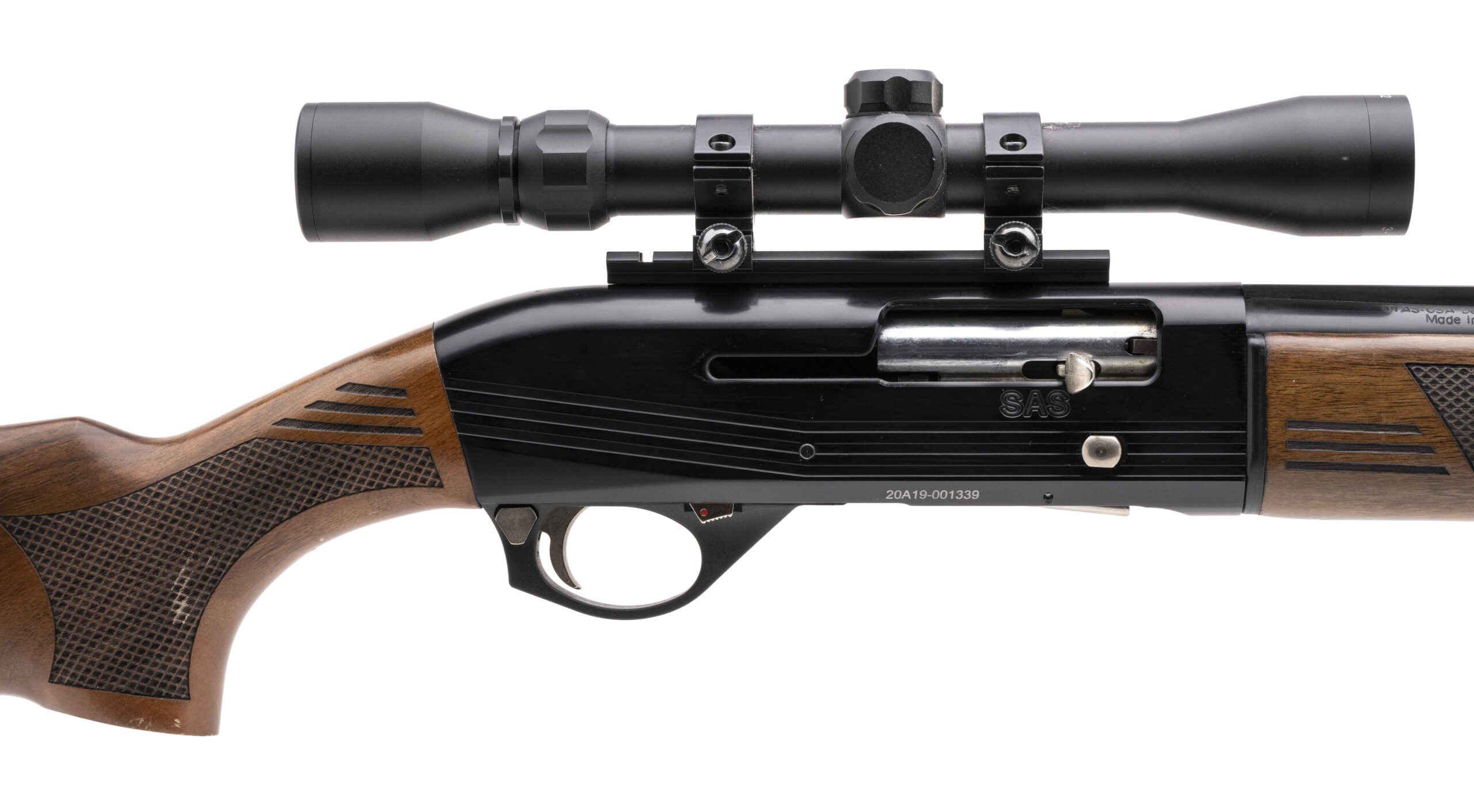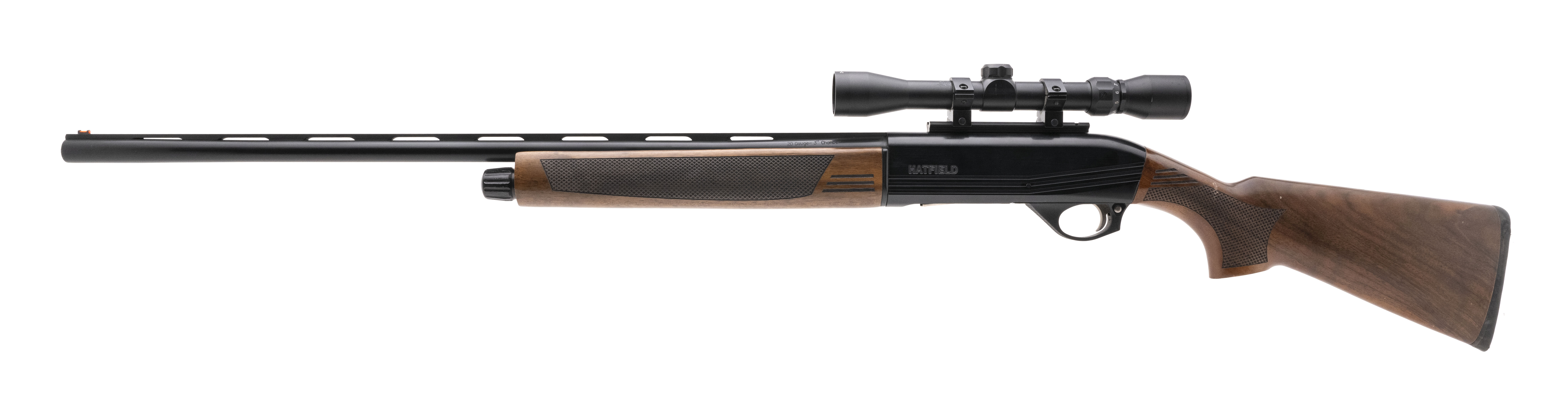 SN: 20A19-001339. Modern production, 20 Gauge with a 28" vent rib barrel w/removable choke. Bore is bright. Semi-auto field shotgun with a 3" chamber. Blued finish is in very good condition. Checkered wood stock is in very good condition. Comes equipped with a 3-9x32mm scope.