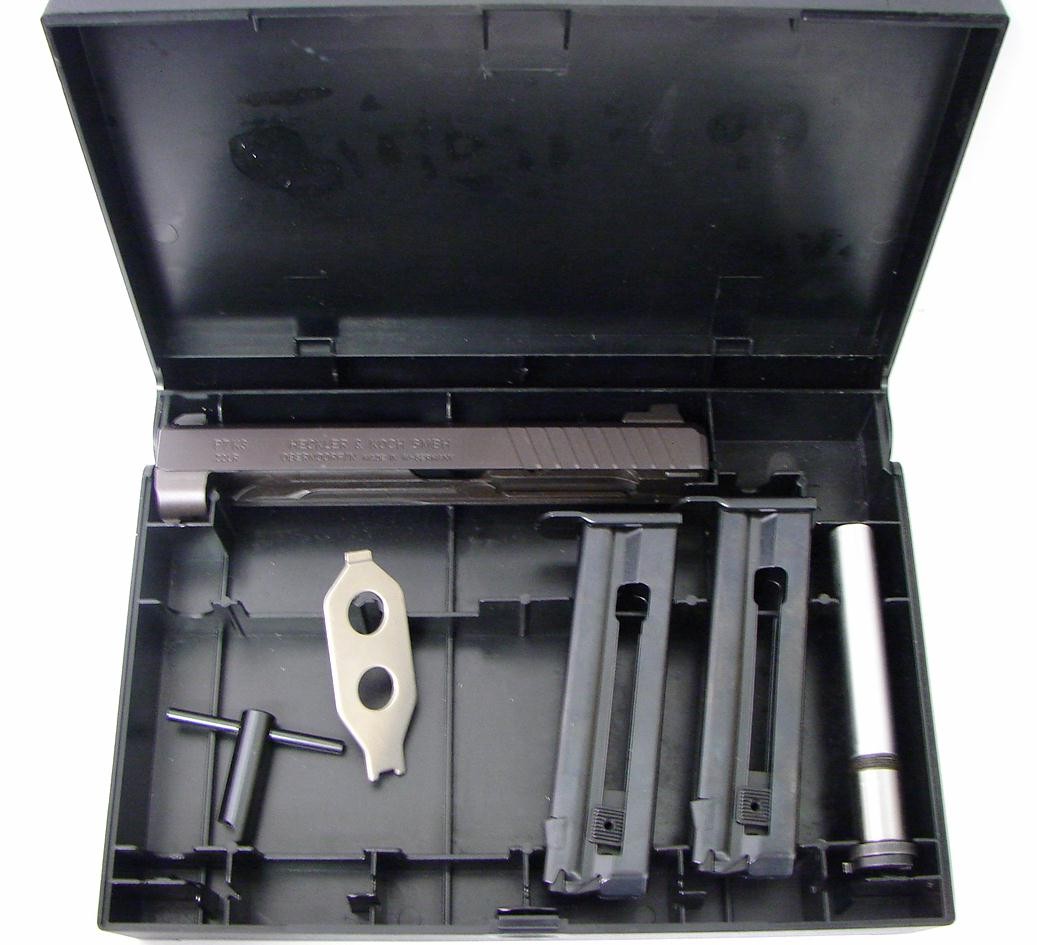 Heckler & Koch P7 K3 .380 ACP caliber pistol. Rare mini squeeze cocker in .380 caliber with .22 LR conversion unit. Excellent condition with box, magazine and tools. A great set.