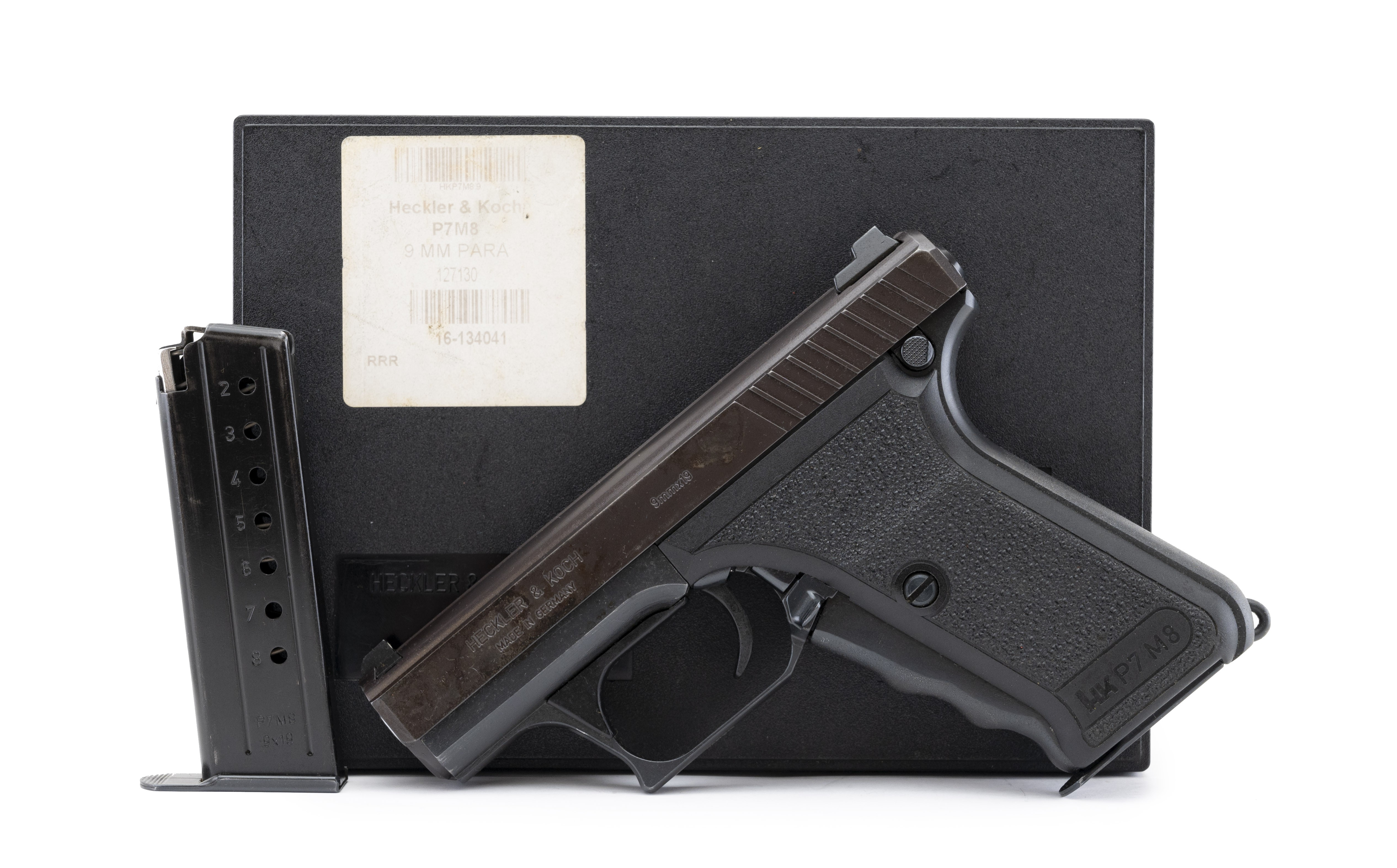 Popular German squeeze cocker. Slide has some holster wear, otherwise good overall condition. Comes with box and extra magazine.