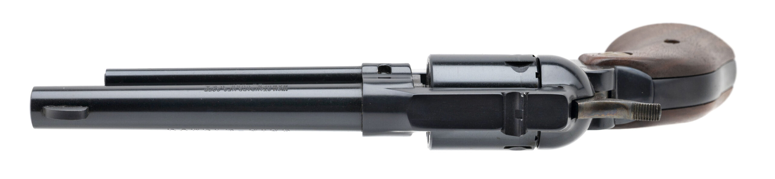 SN: M015729. 1970s production, .22 caliber with a 5.5" barrel. Bore is very good. Blued single action 9-shot revolver with wood grips. Near excellent condition overall. Includes .22LR cylinder.