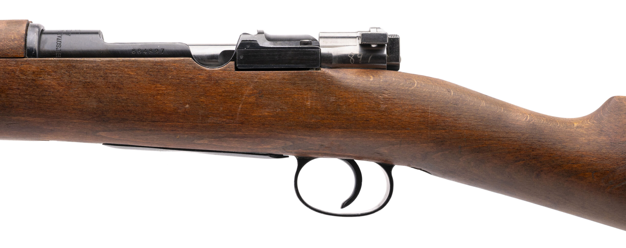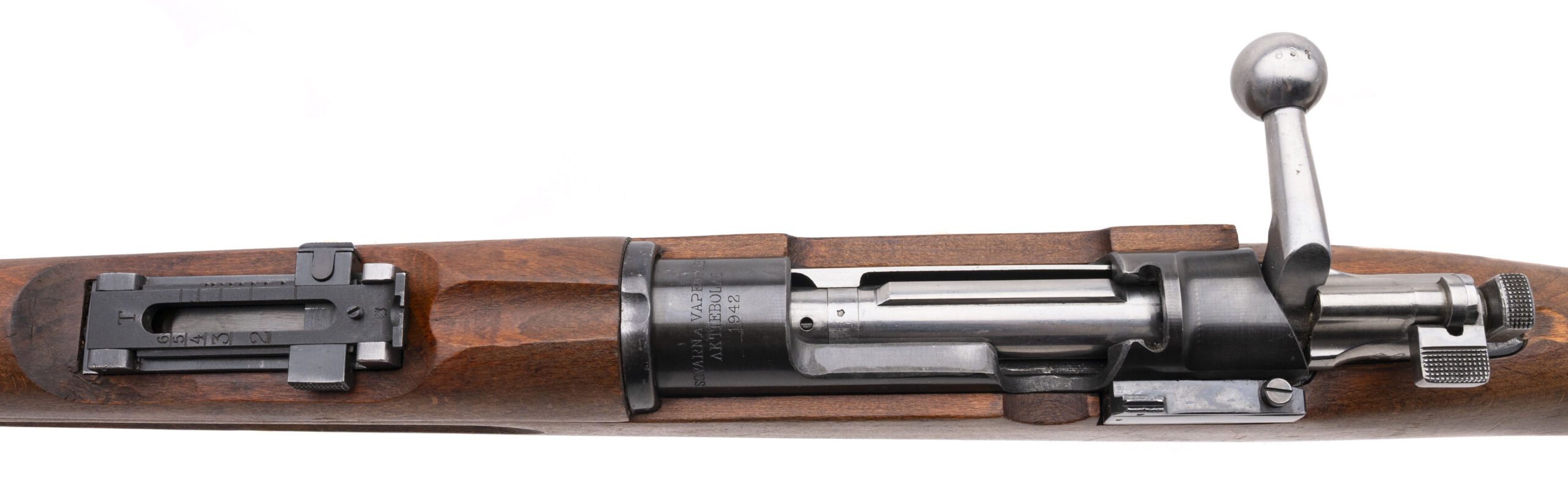 Serial No. 664897, manufactured in 1942, chambered in 6.5×55mm with a 24” round import-marked barrel. The bore is bright and shiny with strong, well-defined rifling. The rifle remains in overall very good condition, showing minimal handling and storage wear to both the finish and stock. A solid mid-war Swedish service rifle with a smooth action that functions correctly.