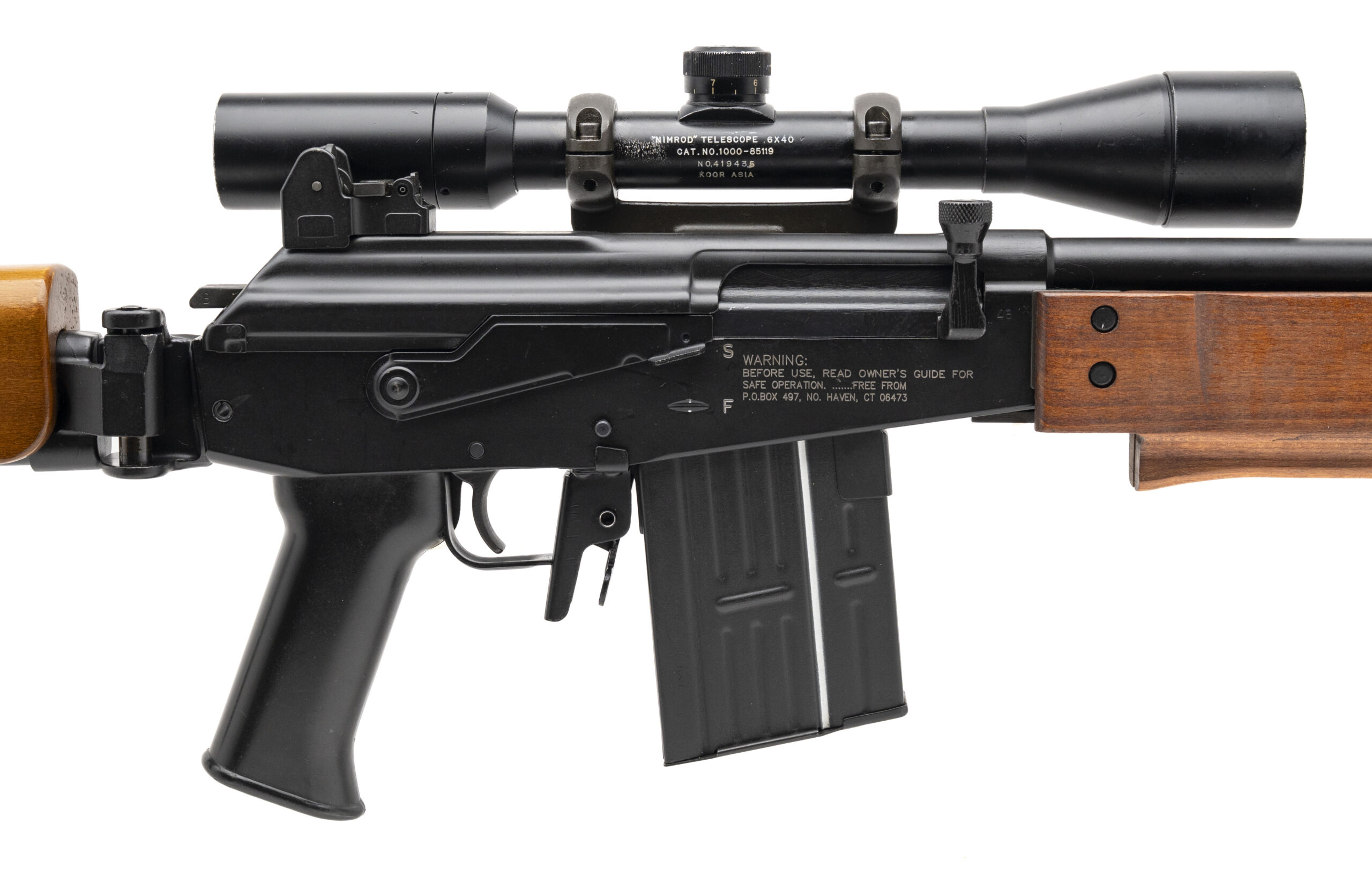 SN: 97138115. Made circa 1993, .308 with an 20" barrel w/flash hider. Bore is bright with excellent rifling. Rare pre-ban Israeli made "Galatz" sniper rifle with correct "Nimrod" 6x40 side-mounted scope. Excellent wood furniture, and Iron side-folding stock w/wood cheek rest. Overall condition is excellent. Comes with carry bag, manual, and 4 extra magazines. A very desirable model for any military sniper rifle collection.
