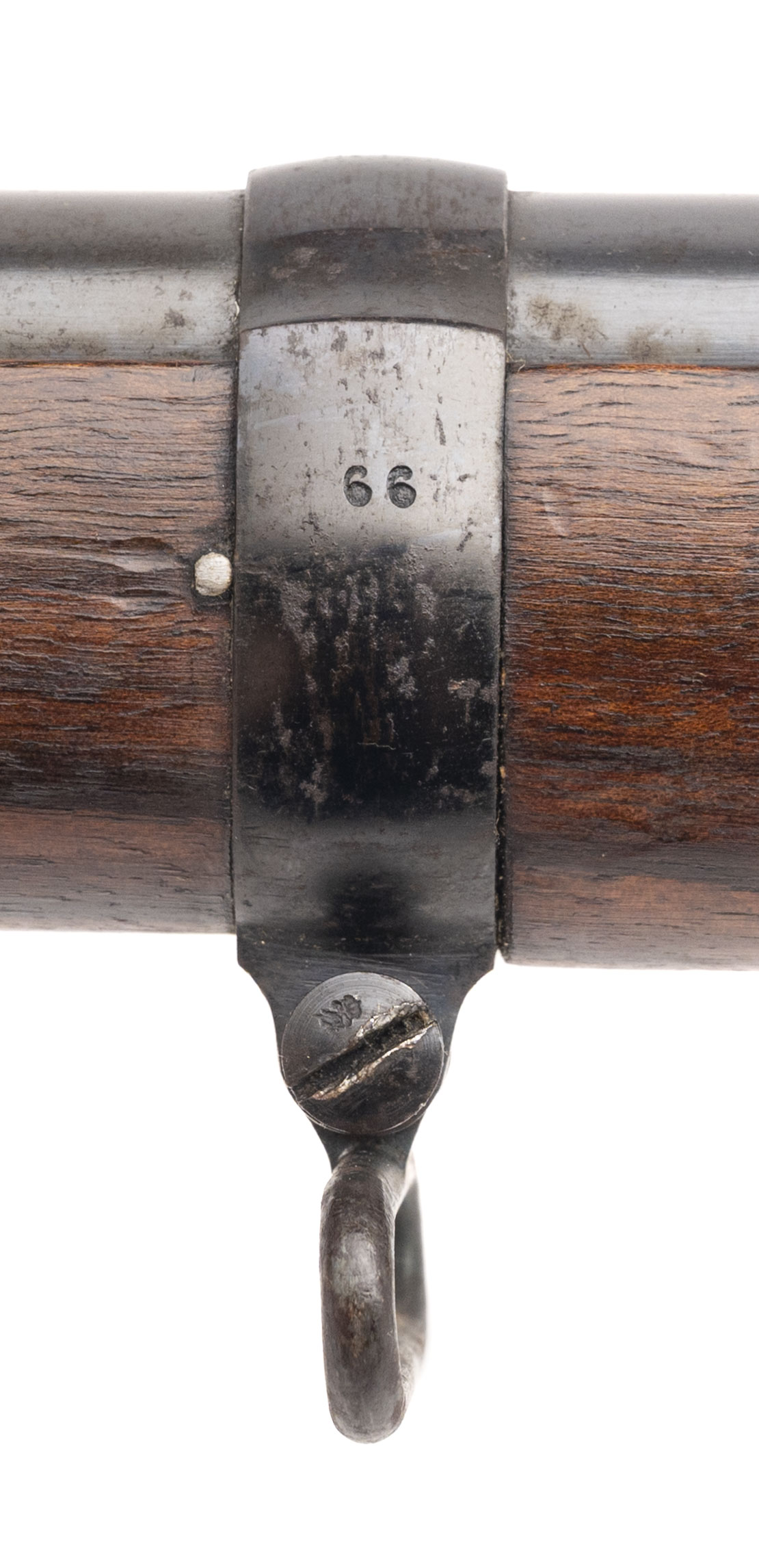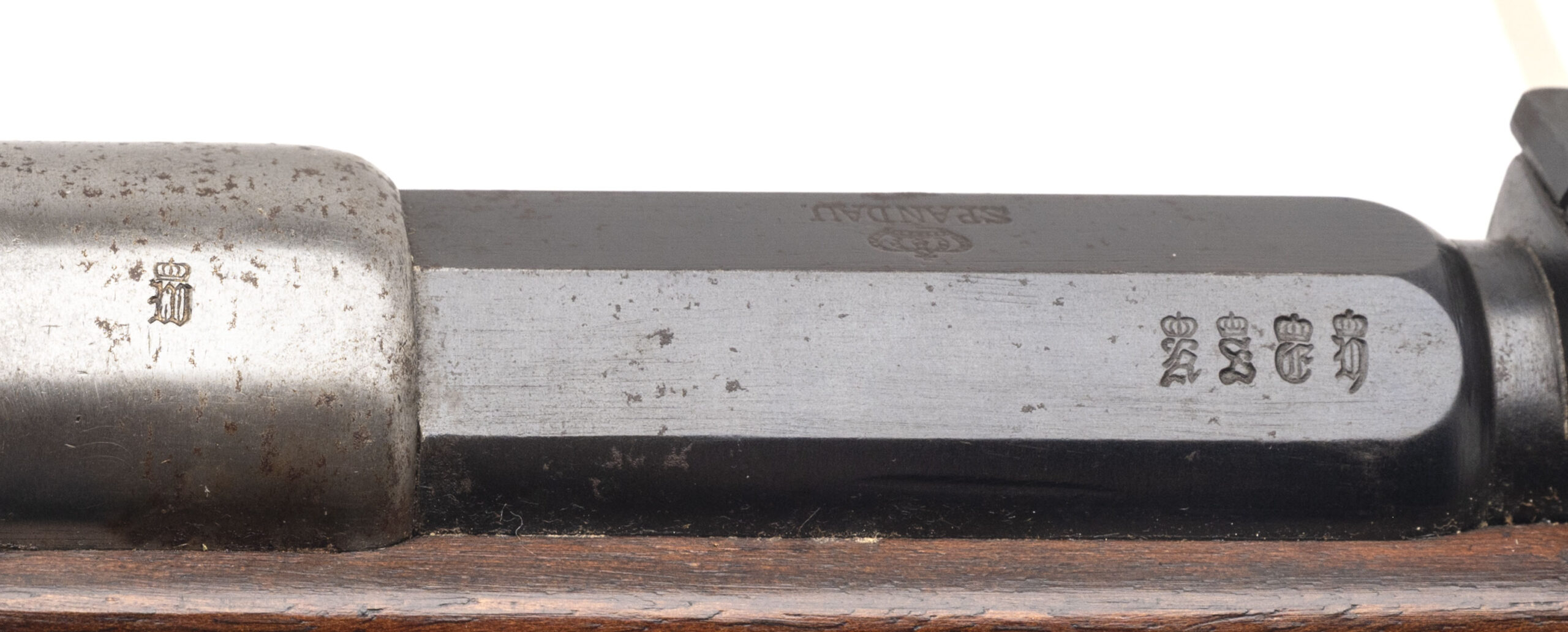 Serial No. 9366, manufactured in 1888 at the Spandau Arsenal, chambered in 11mm with a 31½" round barrel. Bore is bright and shiny with strong rifling, a desirable trait on these early repeating Mausers. Serial numbers are matching throughout, and the barrel retains the majority of its original blue finish. Light surface oxidation is present on the receiver and bolt, consistent with age. Stock remains in very good condition, showing minimal handling marks and crisp cartouches that speak to careful preservation rather than heavy service. Action is smooth and functions correctly. A handsome, well-kept example of an Imperial German 71/84 rifle.
