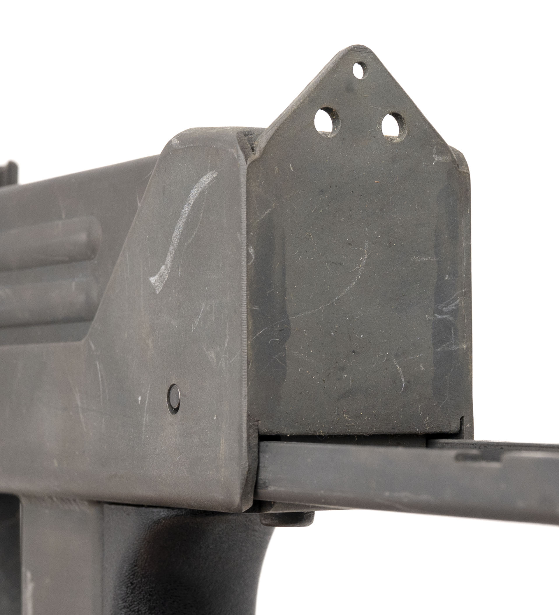 SN: 1-3001678/S133. 1980s Vintage, .45 ACP with an 5.7" threaded barrel. Pre-Ban Submachine gun with a 2-Position selector switch. Parkerized finish and folding metal stock are in very good condition with minor wear. Overall condition is very good. Comes with an RPB M10 Suppressor with an overall length of 11.5", diameter of 1.75", and weighs 10 Oz. Comes with carry bag, barrel shroud, speed loader, and a mag carrier & 10 extra magazines. (CLASS III ITEM)(ALL NFA RULES APPLY)