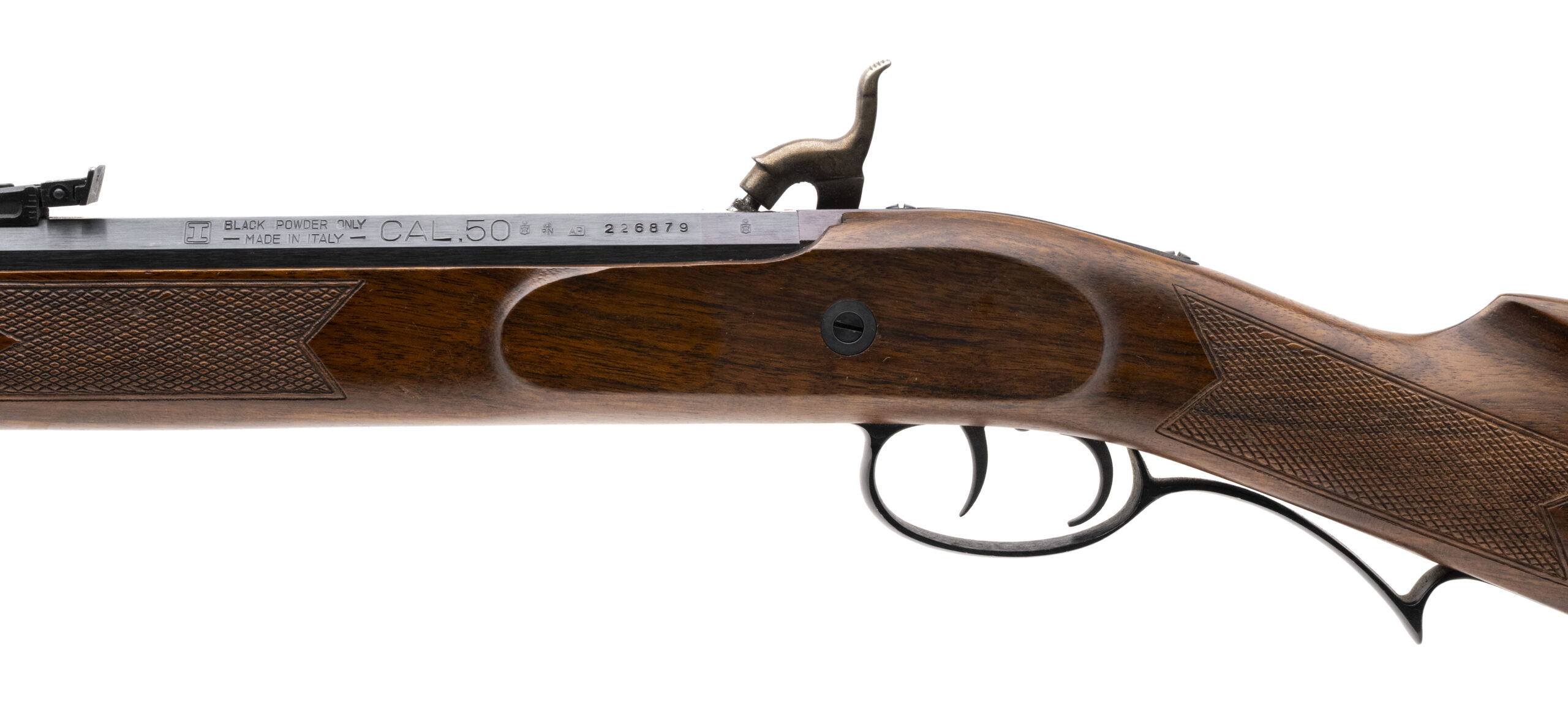 SN: 226879. Modern production black powder .50 cal with a 22" barrel. Modernized percussion Hawken hunter carbine with double triggers, checkered walnut stock and recoil pad. Excellent condition.
