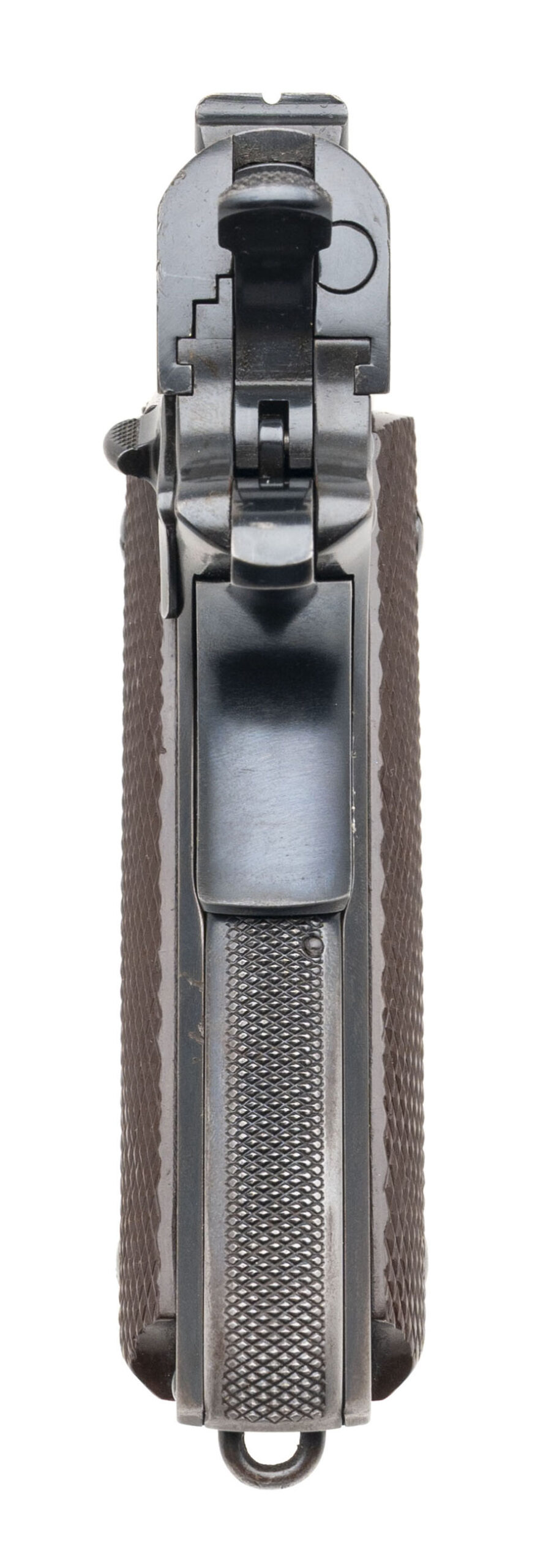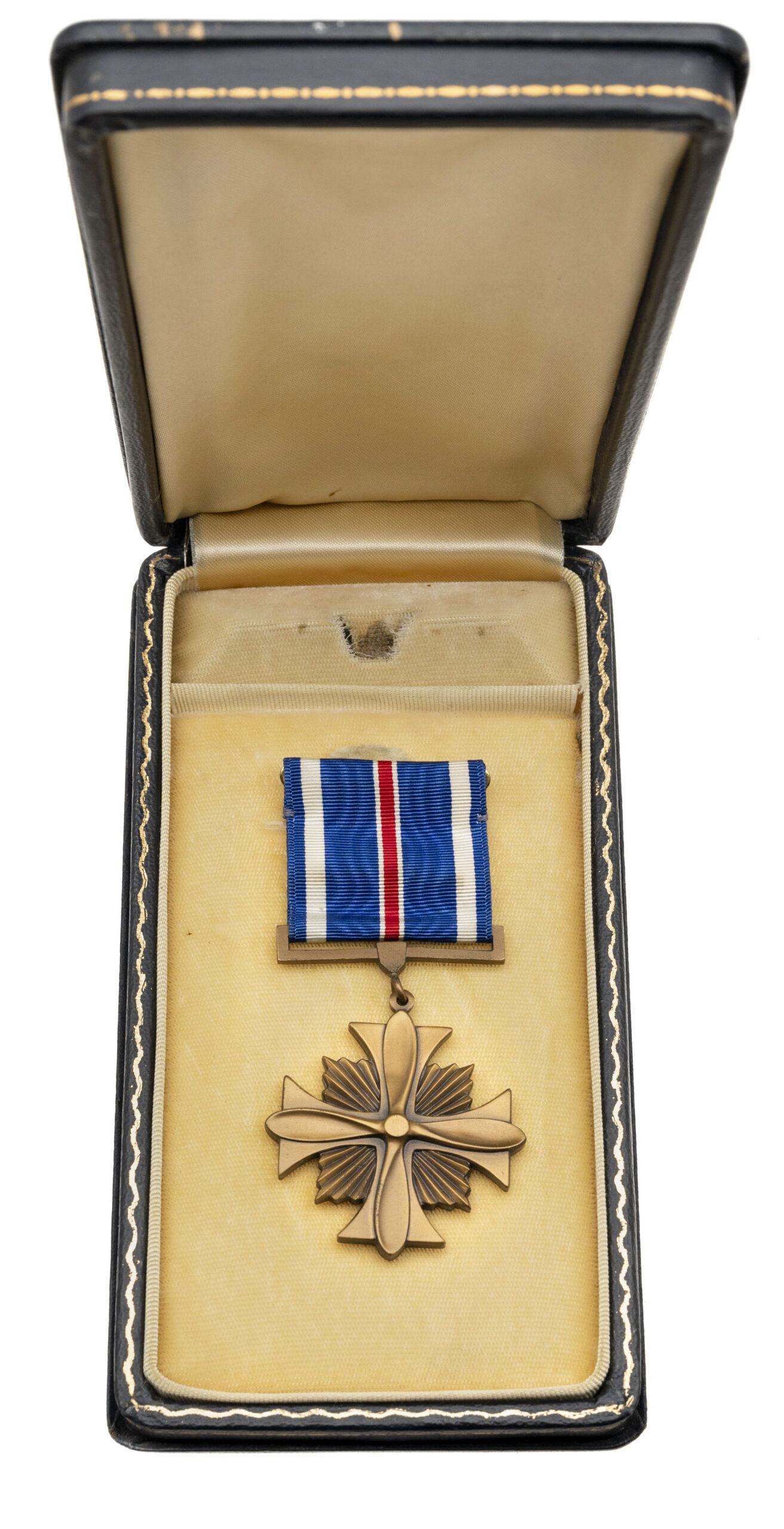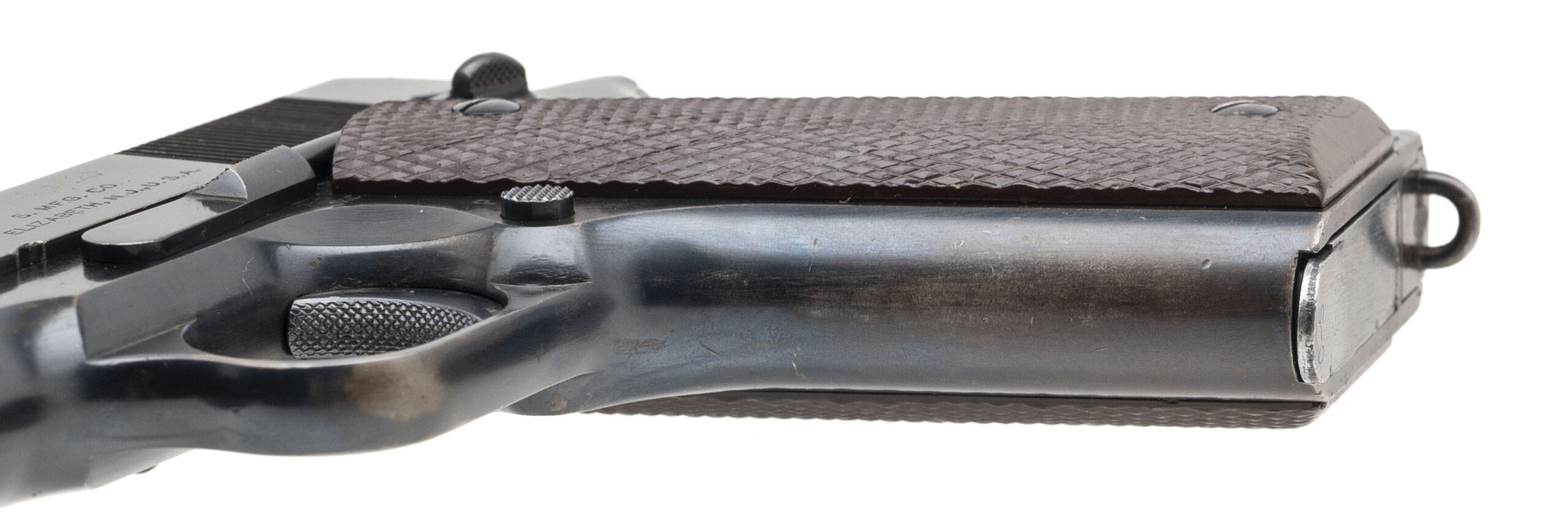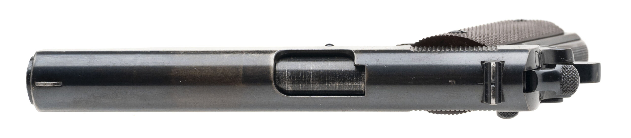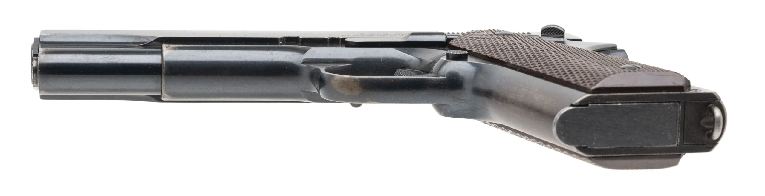 Serial Number S800305. Made in 1940 with a 5-inch barrel that has a bright bore with strong visible rifling. Condition overall is excellent with 90% of the original factory bluing across the metallic parts. This is one of the 500 guns produced under Singer Sewing Machine's "educational contract" to manufacture the M1911A1 before the USA entered World War II, many of which were issued to the U.S. Army Air Corps. This particular Singer was carried by 1st Lieutenant Thomas Randolph Moss, a B-24 pilot in the 765th Bombardment Squadron, 461st Bombardment Group (H) of the U.S. 15th Air Force. Between April 2 & July 8, 1944, Moss flew 35 combat missions over Axis targets in Romania, Yugoslavia, Hungary, Austria, northern Italy, southern France & southern Germany. He carried this Singer during each of those missions, which included tough targets like Budapest, Bucharest, Ploesti, Vienna & Munich. Moss flew the same aircraft for every one of these 35 missions: B-24H #41-28725: a Liberator that was given the nickname "Invictus" - the name by which this pistol is now known. After flying his final combat mission, he rotated back to the USA & took this pistol with him. Moss was awarded the Distinguished Flying Cross for the combat missions he flew during World War II & he remained in the Army after the conflict. When the U.S. Air Force was established in 1947, he continued to serve in it & flew missions as a transport pilot during the Berlin Airlift. He retired from the USAF in 1964 after 24 years in uniform & kept his Singer M1911A1 until March 12, 2018 when he sold it to a gun store in Colorado. Moss passed away at the age of 99 on June 20, 2020. While his pistol is exceptional in terms of its condition & its rarity, more importantly it is an historical artifact that reminds us to remember the men of the 15th Air Force & the contribution they made to victory during World War II. Comes with one 7-round magazine made by the Scovill Manufacturing Company, a Galco leather sport utility bag, a Negrini pistol case, authenticity documentation from Moss himself & the original cased Distinguished Flying Cross he earned while flying combat missions with the 15th Air Force.