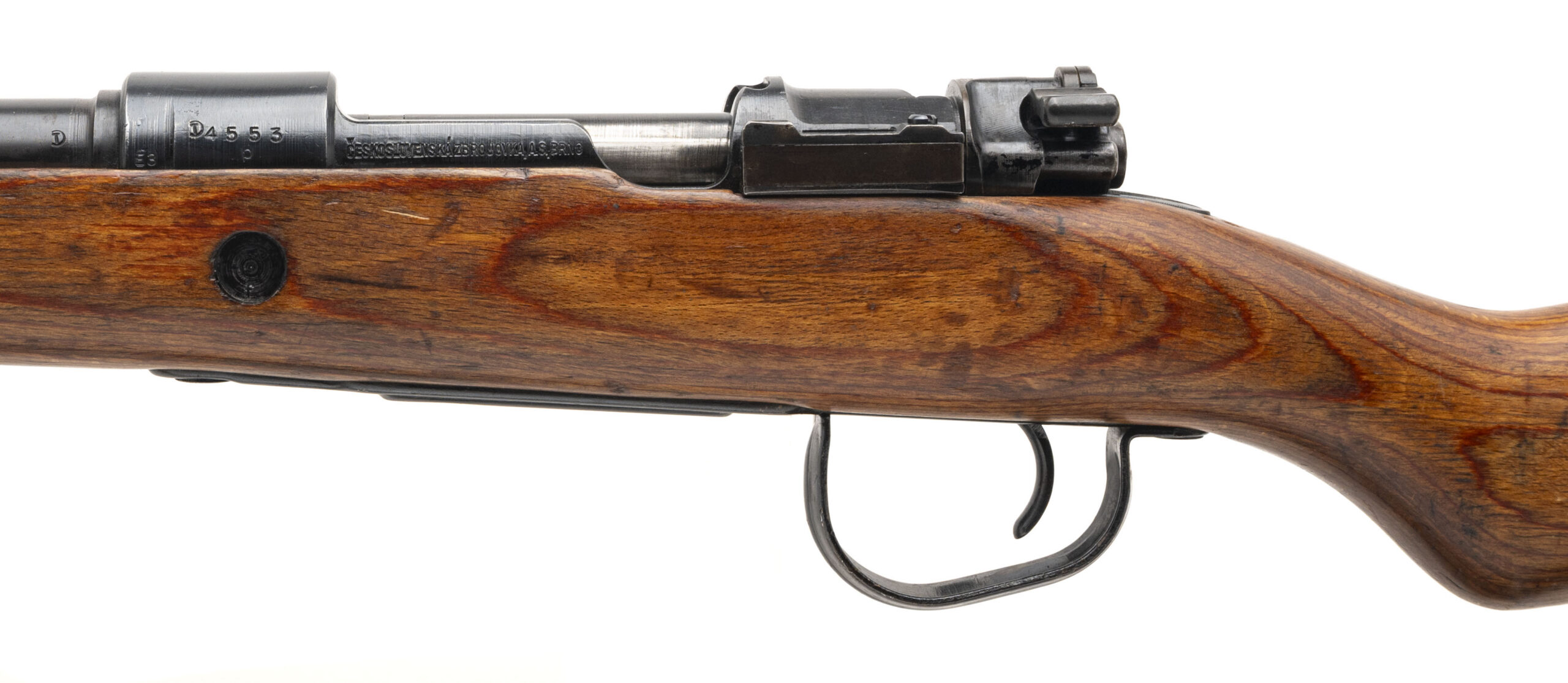 Serial No. 4553, manufactured post–World War II at Ceská Zbrojovka Brno and chambered in 7.92×57mm with a 23.62” round barrel. The bore is bright and shiny with strong rifling noted. This Czech-produced Kar98k was assembled using leftover German-occupation components and later sold to the Hashemite Kingdom of Iraq, as indicated by the Iraqi “Jeem” property mark present on both the receiver and barrel. The rifle remains in overall very good condition, showing only minimal handling and service wear consistent with military use. The action is smooth and functions correctly, making this a solid and historically interesting postwar Kar98k contract rifle.