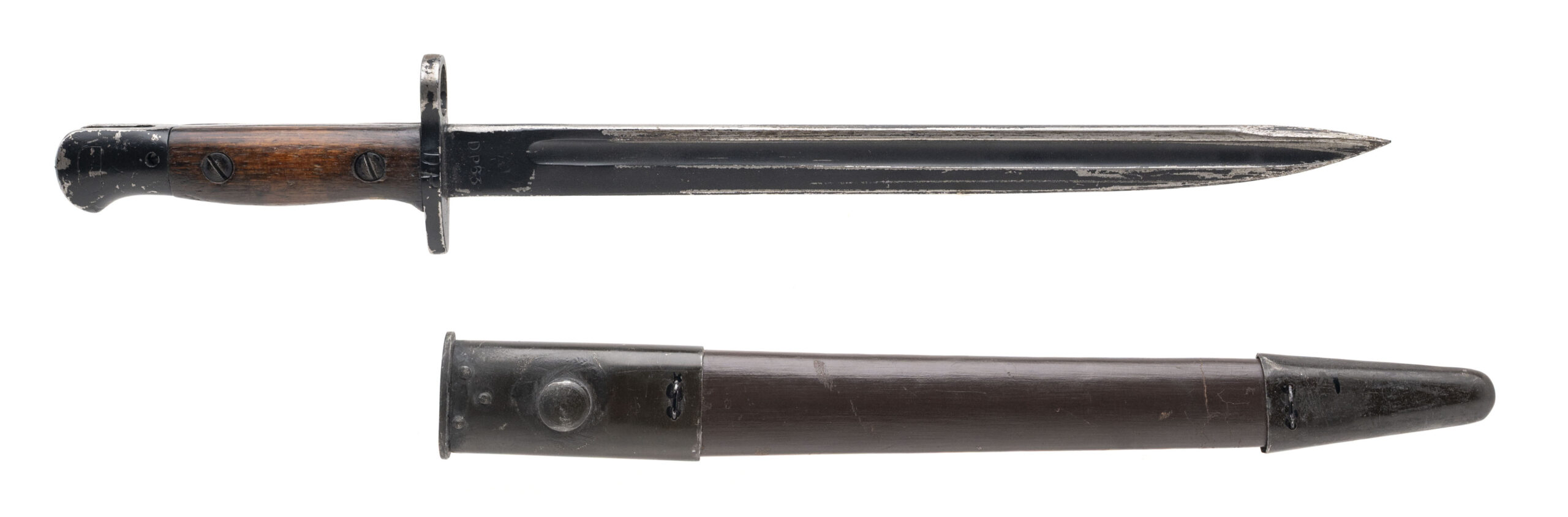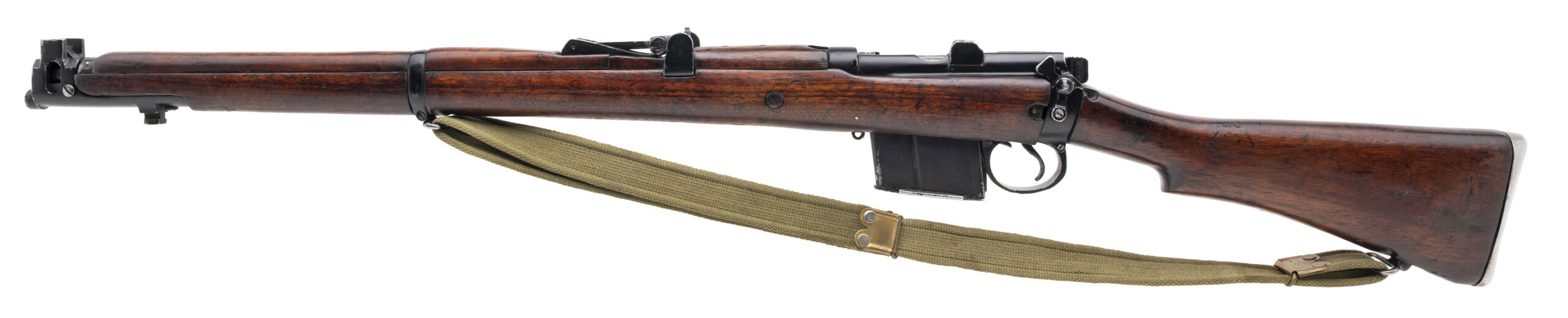 Serial Number K1751. Made in 1969 with a 25-inch barrel chambered for the 7.62×51mm cartridge that has a bright bore with strong visible rifling. This is a conversion of the .303 caliber SMLE Mk III* rifle that was designed by the Rifle Factory Ishapore & manufactured in India by the Ordnance Factories Board. It features an adjustable rear sight assembly with graduations out to 800m & a proprietary 10-round detachable box magazine. Condition overall is very good with black enamel paint across the metallic parts & wood furniture that shows light handling wear. Comes with a military surplus webbed sling in excellent condition as well as a No. I Mk. II* 11.875-inch "Drill Purpose" bayonet with scabbard.