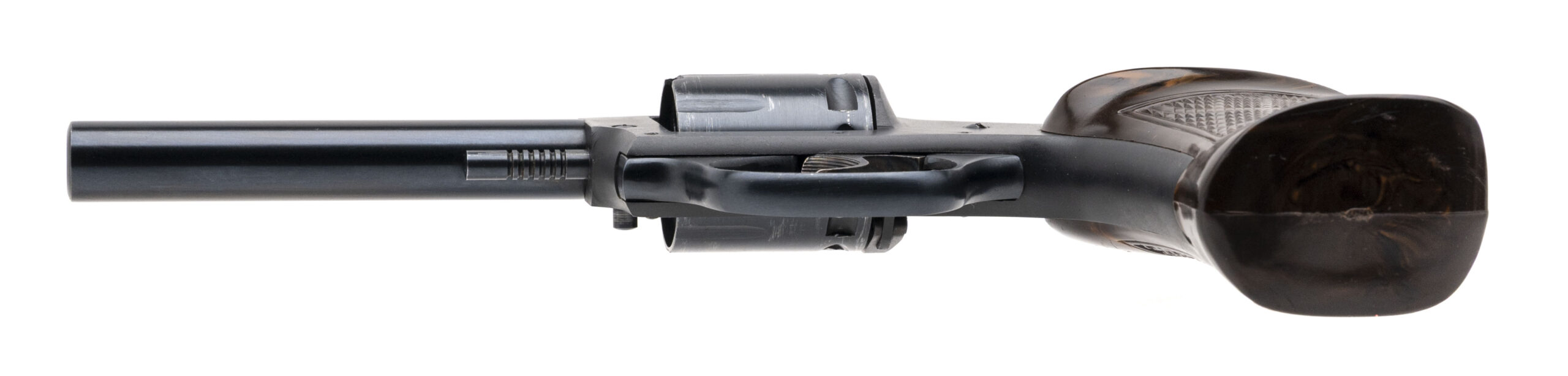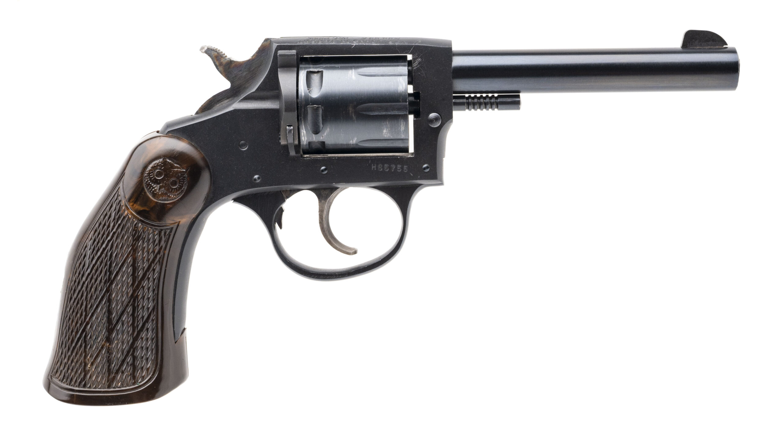 SN: H65755. 1960s vintage, .22 Cal. with a 4.25" barrel. Bore is very good. Double-action rimfire revolver with an 8rd cylinder, bladed front sight, blue finished barrel, matte black finished frame, and checkered plastic grips. Frame shows minor marks throughout. Overall condition is very good.