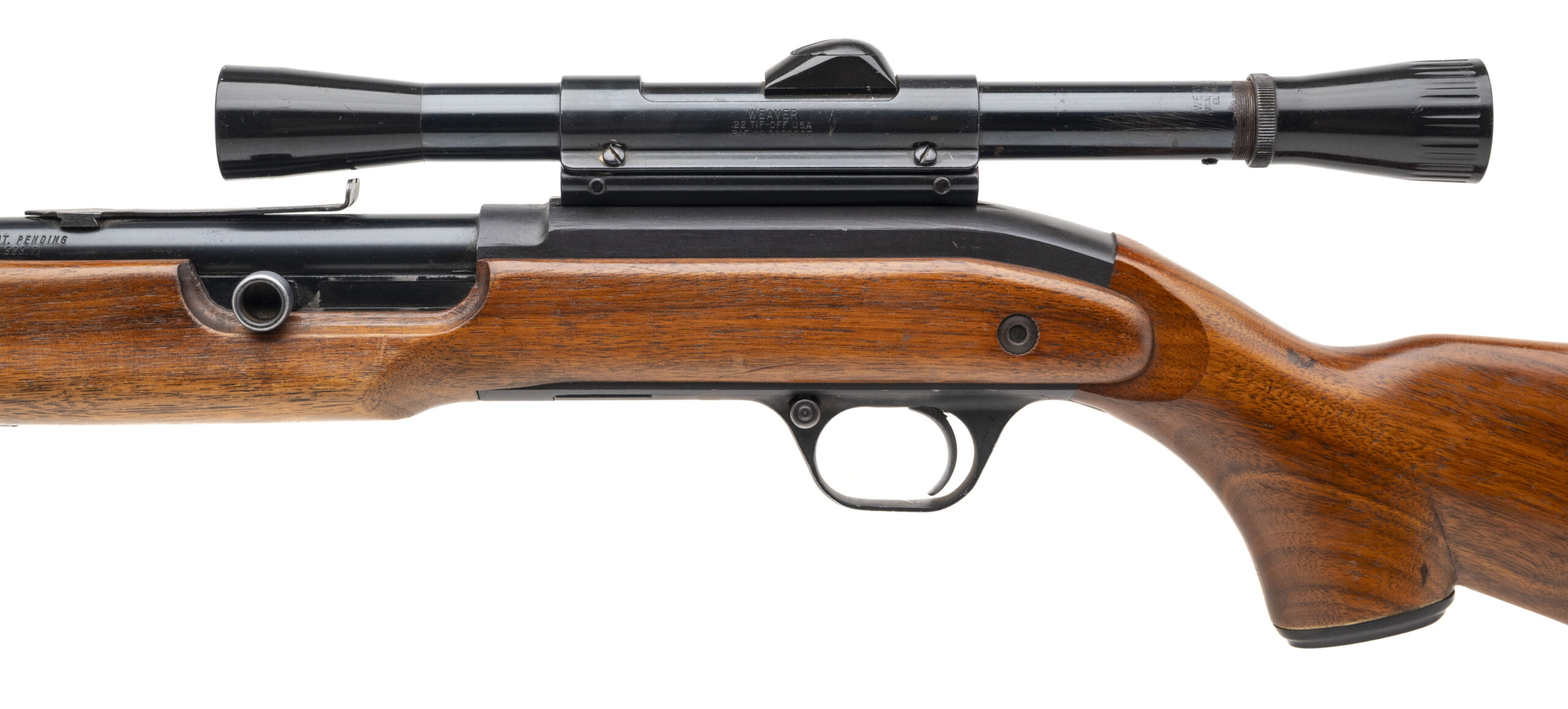 NSN. Tube fed semi-auto 22lr rifle with a 24" round barrel, front sight insert has been removed, has a Weaver C4 scope and wood stock with retractable sling in the butt stock. Some light handling marks, overall in very good condition with an excellent bore.