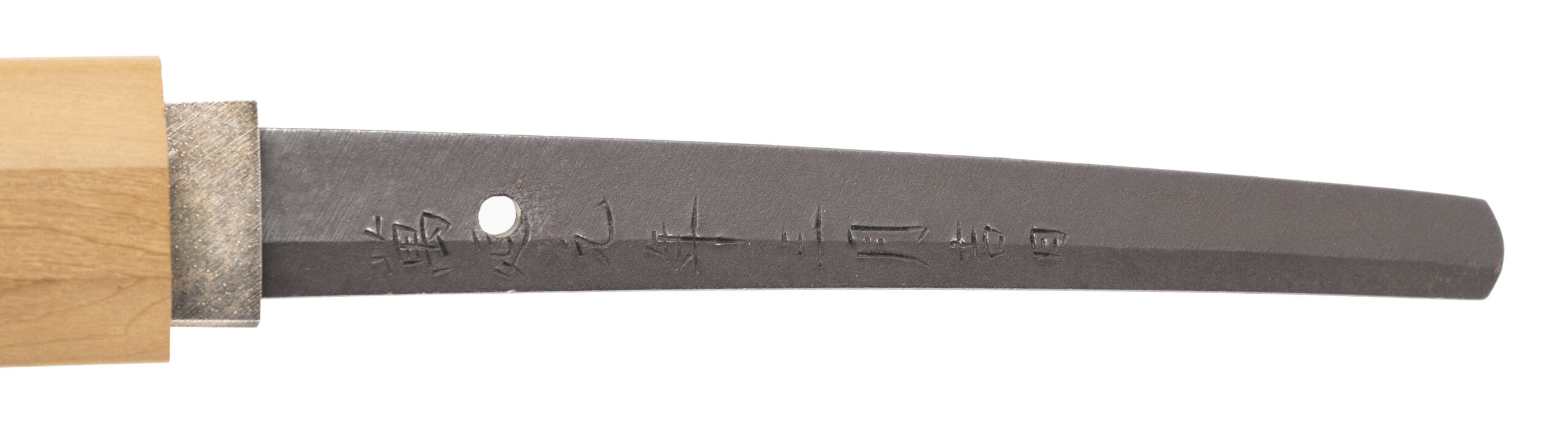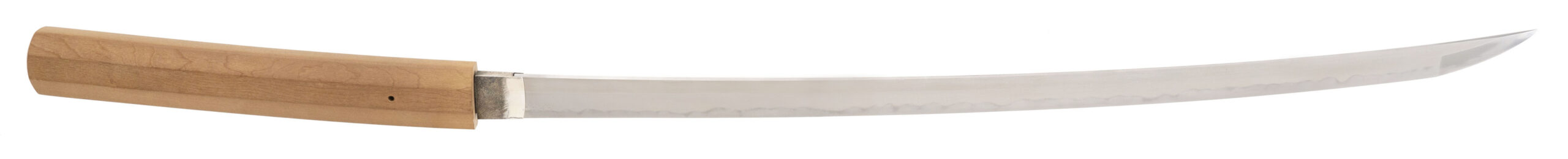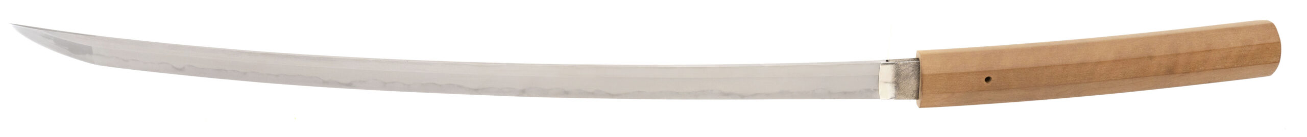 Japan, Edo period (Bakumatsu), dated Man’en 1 (1860) A magnificent and exceptionally large Japanese sword by Kurihara Ason Nobuhide (栗原朝臣信秀), one of the foremost master swordsmiths of the late Edo period and ranked Jō-jō saku (上々作) for superior workmanship in the Fujishiro and NBTHK classifications. This impressive blade measures approximately 30 inches (76.2 cm) in nagasa, firmly placing it in the rare and highly sought-after ōdachi / great katana category. Swords of this length and quality are uncommon, particularly when signed, dated, and preserved in healthy condition. The tang is signed: Kurihara Ason Nobuhide and dated: Man’en gannen nigatsu kichijitsu (An auspicious day, second month, 1860) Kurihara Nobuhide was a prominent Shinshintō master working in Edo and a follower of the Suishinshi Masahide revival tradition. He is widely respected for producing blades of refined classical form, excellent steel quality, and outstanding cutting performance, and is also recorded as Ryō-wazamono (superior cutting ability). The blade displays an elegant long-sweeping tori-zori curvature, refined proportions for its exceptional length, and a well-formed chū-kissaki. The hamon is a graceful notare-midare / gunome-midare pattern with a clear nioiguchi, showing fine control and consistency throughout. The jihada is tight and well forged, typical of high-level Shinshintō work. The sword is housed in its original shirasaya mounts for preservation and is in very good polish, showing no fatal flaws. This sword originates from the renowned Dr. Guthrie collection, one of the notable private American collections of Japanese swords formed in the mid-20th century. The blade was previously accompanied by NBTHK authentication papers identifying the smith as Jō-jō saku; these papers were regrettably lost by the prior owner, though the workmanship and signature fully support the attribution. The blade is an excellent candidate for NBTHK re-submission. Large, signed, dated Shinshintō blades by top-ranked smiths are increasingly scarce on the market, and examples of this size and quality are rarely encountered. An exceptional opportunity to acquire a museum-quality Japanese sword by a master craftsman at the twilight of the samurai era.