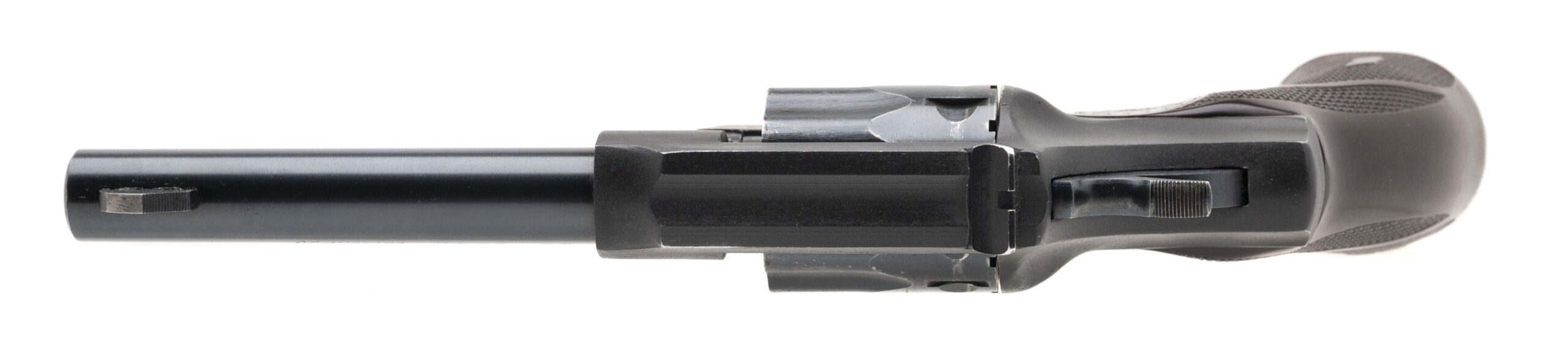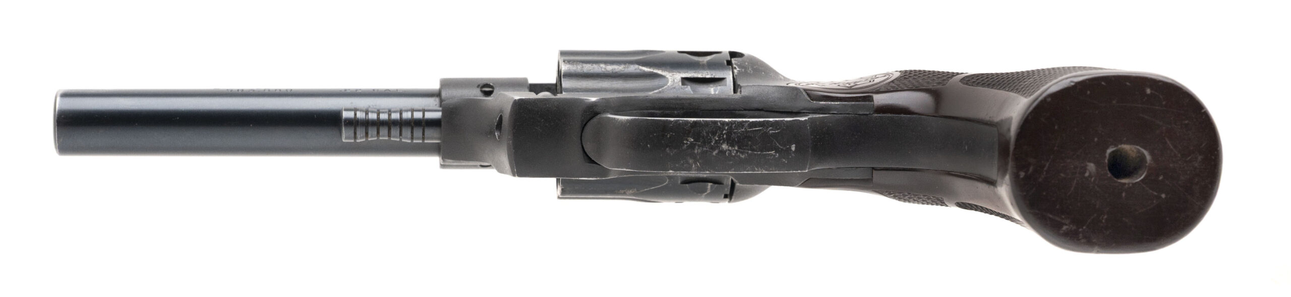 SN: 5292 made circa 1950’s. 9 shot double action 22 caliber revolver with a 4.5” barrel and original 1 piece grip in good condition with some wear and handling marks noted. Comes with original box.