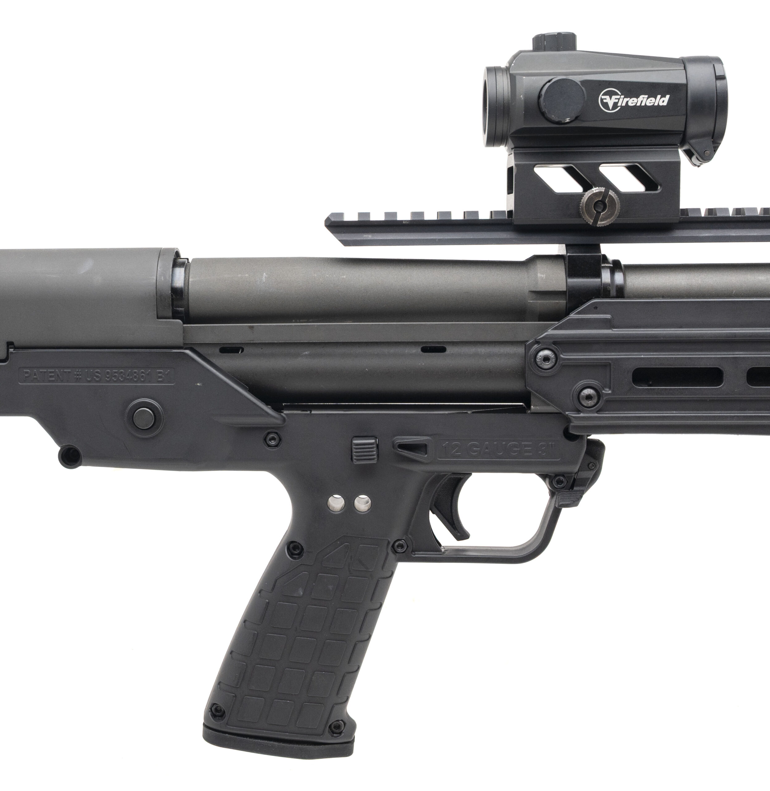 SN: 24Q2E53. Modern production, 12 gauge with a 18.5" cyl. bore barrel chambered for 3" shells. Bore is very good. Pump-action tactical shotgun with a Firefield red/green dot optic, parkerized finish, and black synthetic stock. Finish & stock show minor marks. Overall condition is very good.