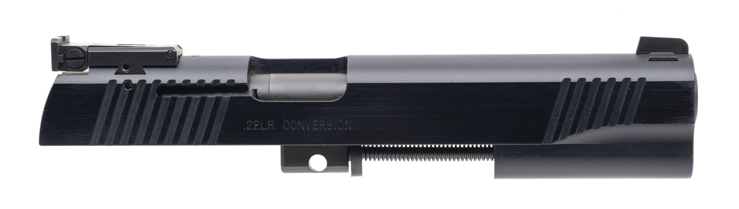 Modern production, .22 conversion kit with a 5" barrel. Blued finish, target sights, and front slide serrations. Excellent condition with case and magazine. (CONSIGNMENT)