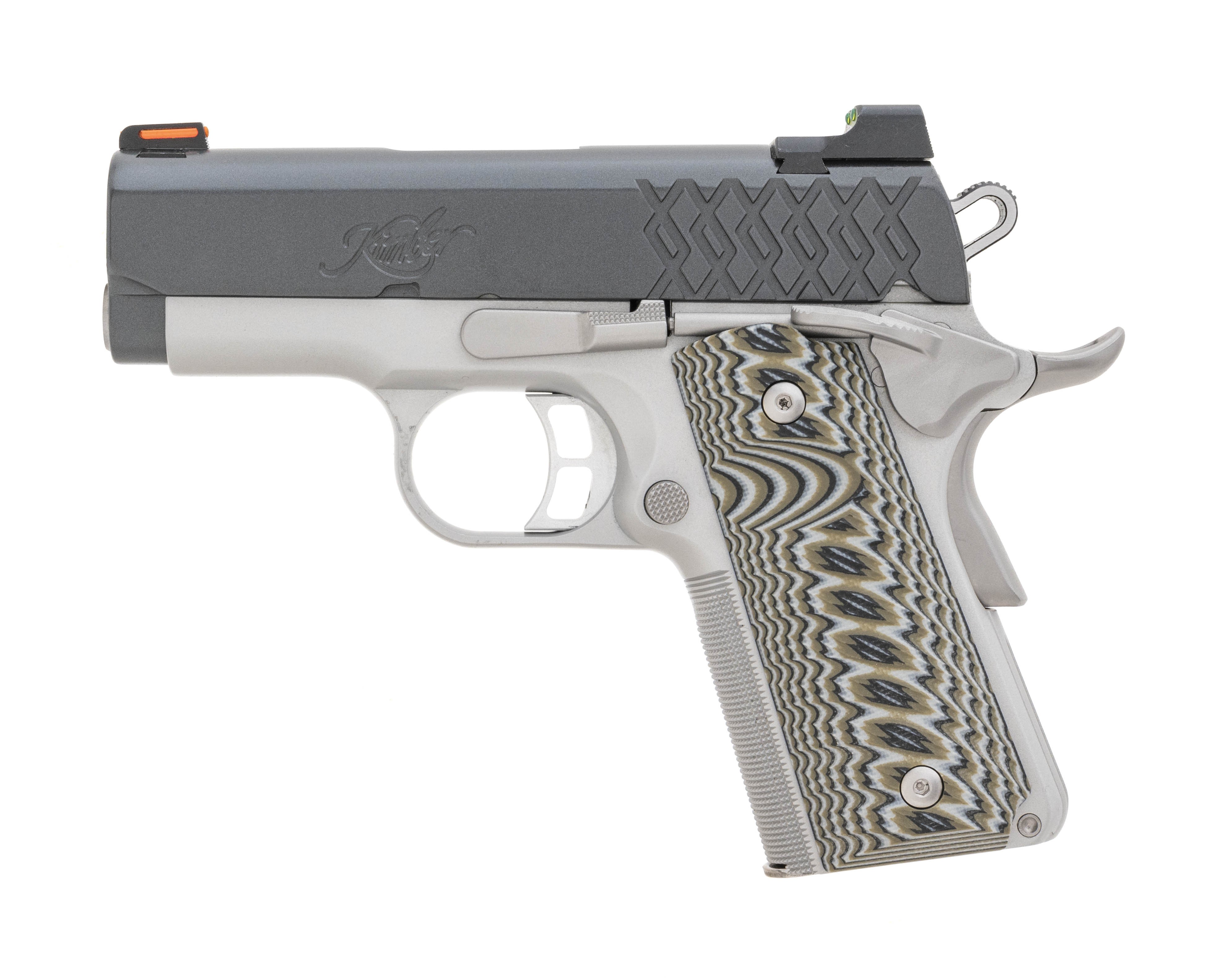 Semi-auto 1911 with a 3" barrel, chambered in 9mm with an aluminum frame, G10 grips and satin silver finish. NEW. UPC: 669278303574
