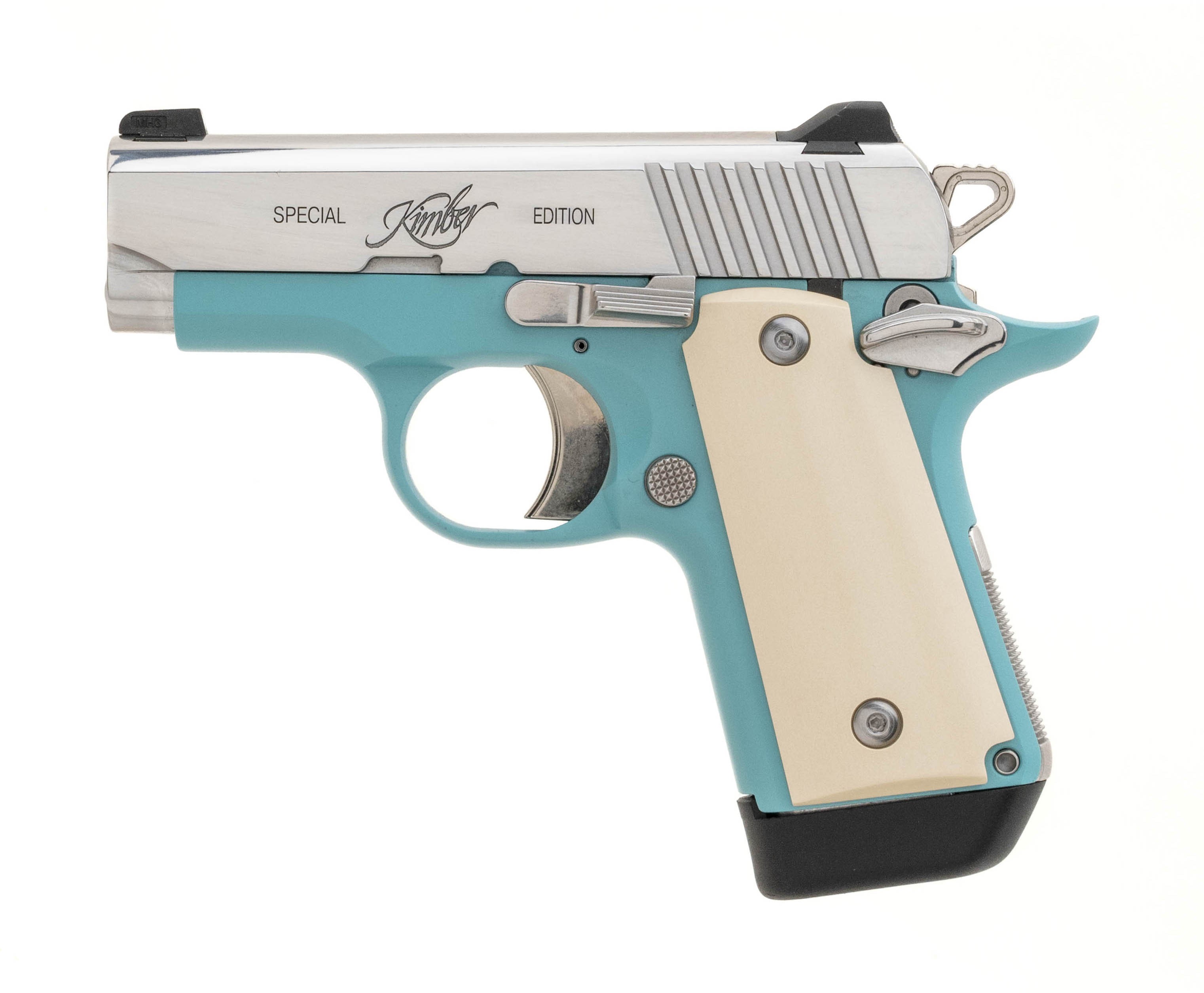 Two-tone Bel Air blue frame micro pistol with Ivory Micarta grips and fixed low profile 3-dot tritium night sights. NEW. UPC:669278332109.