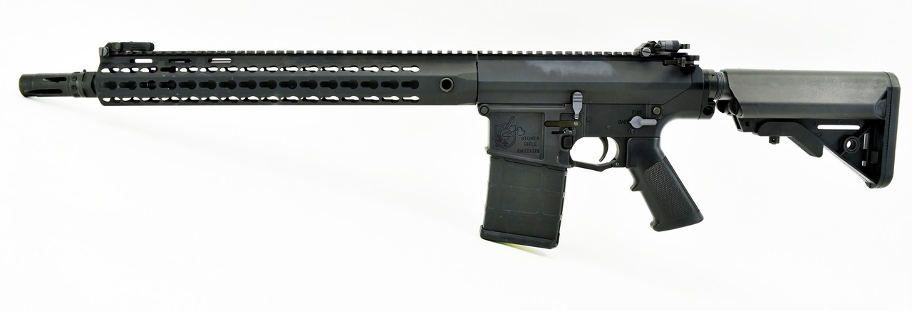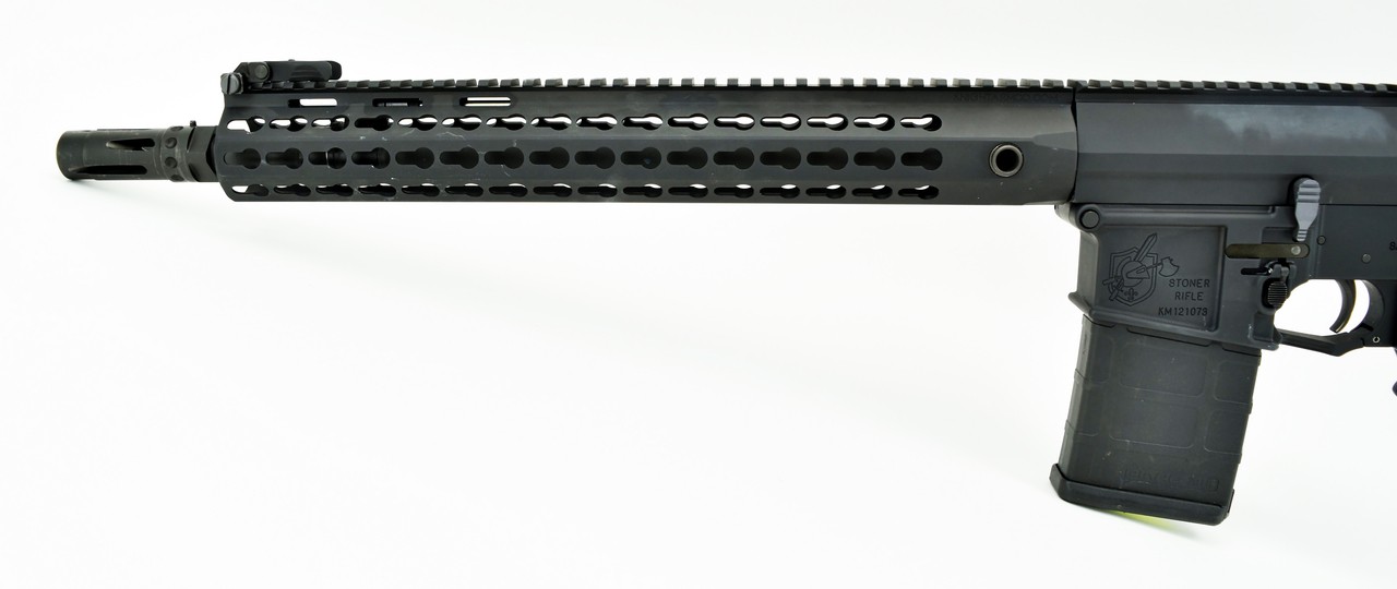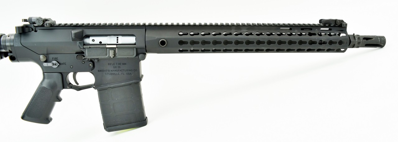 Knight SR-25 7.62mm caliber rifle. 16” .308 with 15” key mod rail and LMT stock. New
