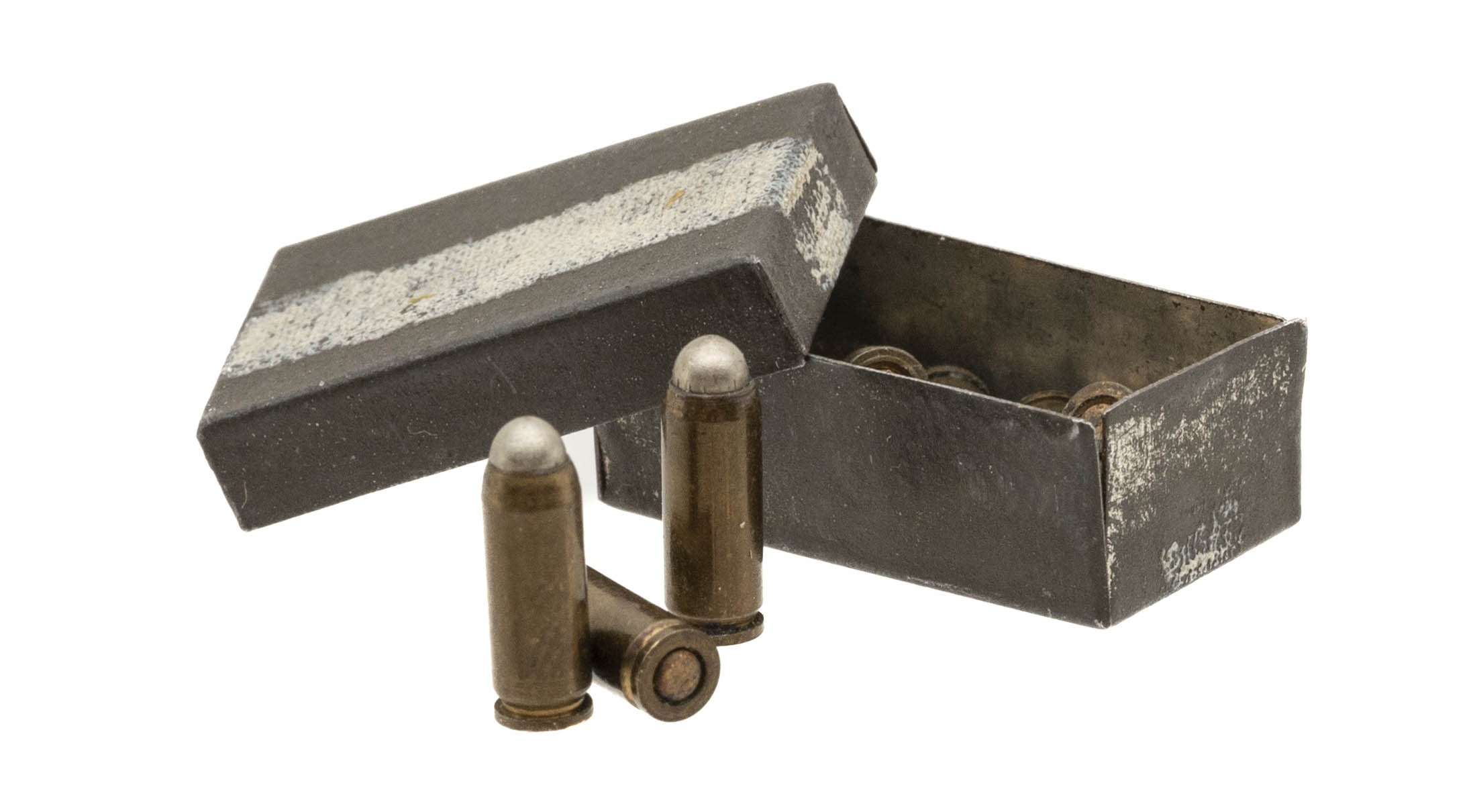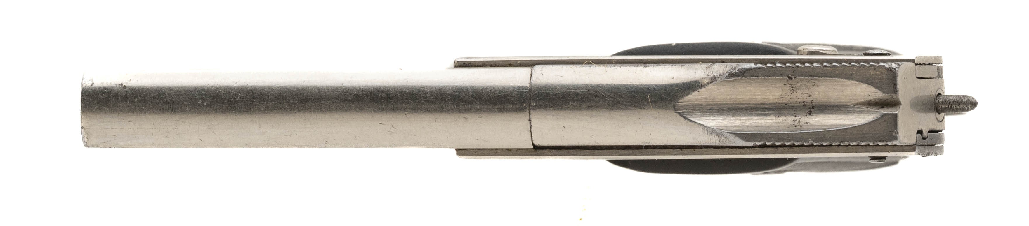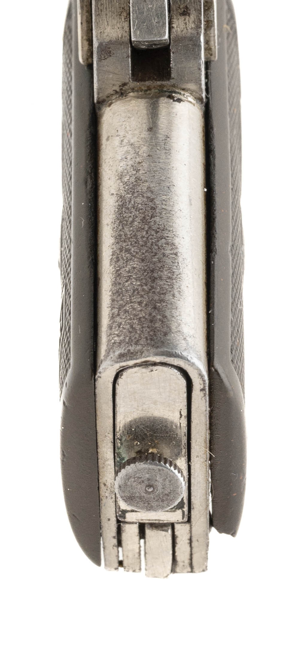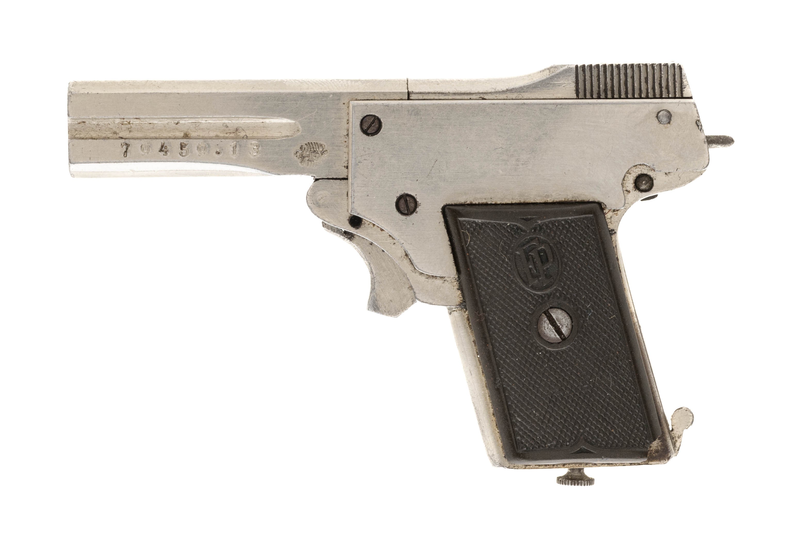 SN: 10. Rare stainless micro pistol with 1.5" barrel and 7rd capacity. Approximately 1000 were produced from 1910 to 1938. The bore is excellent. The actions work properly. All visible serials are matching and all markings are sharp. The left side of the barrel is marked "79459.13" and a proofmark. Has a a small box of 9rds of 2.7mm.