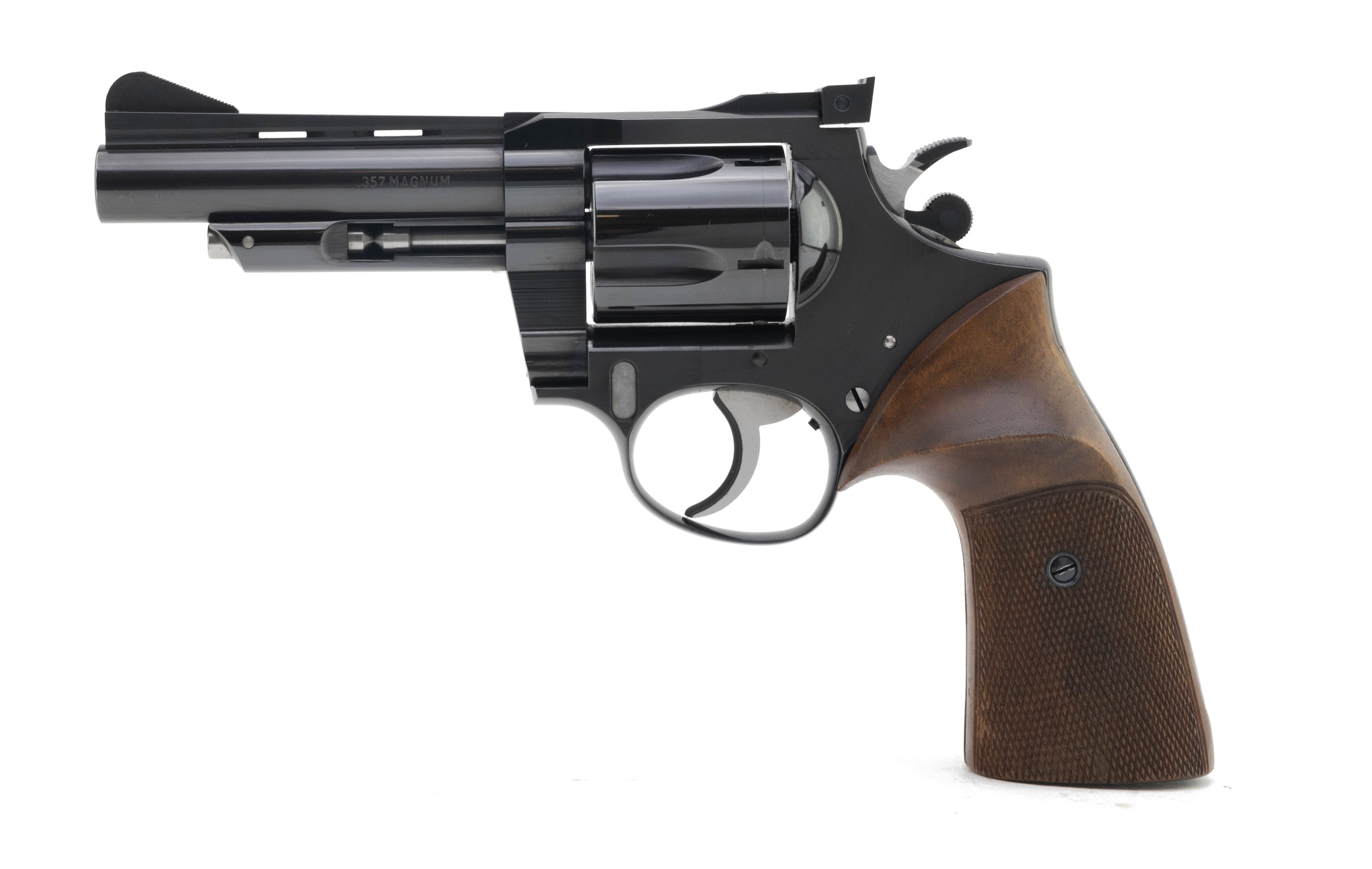 Original W. German made 4" blue Sport model, 1970's vintage. These premium revolvers are hand fitted and tuned to the highest degree. Excellent condition overall with a few handling marks on the wooden grip. A very desirable revolver.
