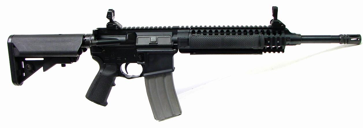 Land Warfare M6 5.56 MM NATO caliber rifle. LWRC M6 piston driven rifle with true mid -length gas block, pinned 14.5" barrel, Skirmish BUIS, B-5 SOPMOD stock Geissele, Magpul MIAD grip and one 30 round P-Magazine. New.