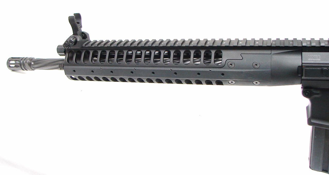 Land Warfare REPR 7.62 X 51 Nato caliber rifle. Piston driven AR-10 rifle with 16" spiral fluted barrel, 1:10 twist, adjustable gas settings, slim forearm with sectional rails, VLTOR stock, Skirmish BUIS, Magpul grip and 1 Magpul 20 round magazine. New.