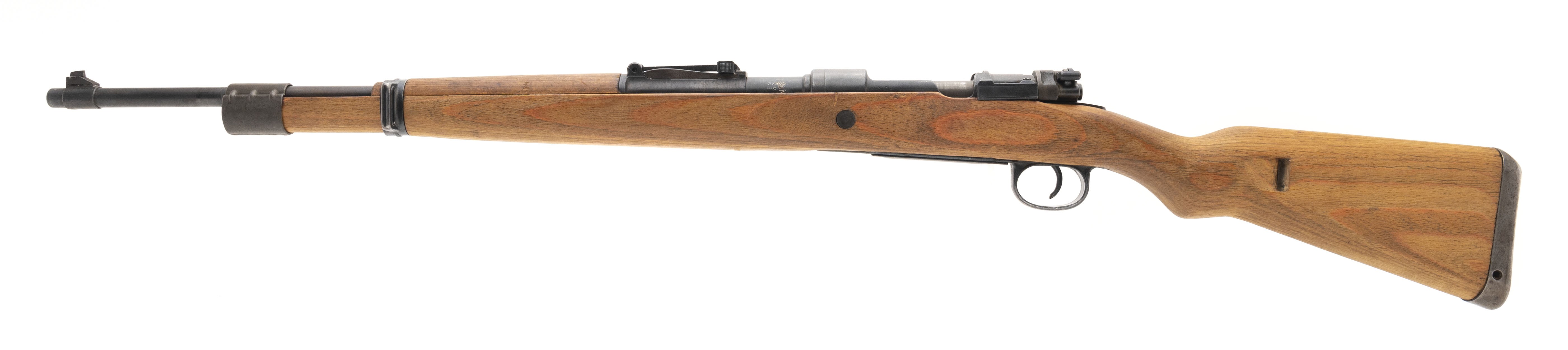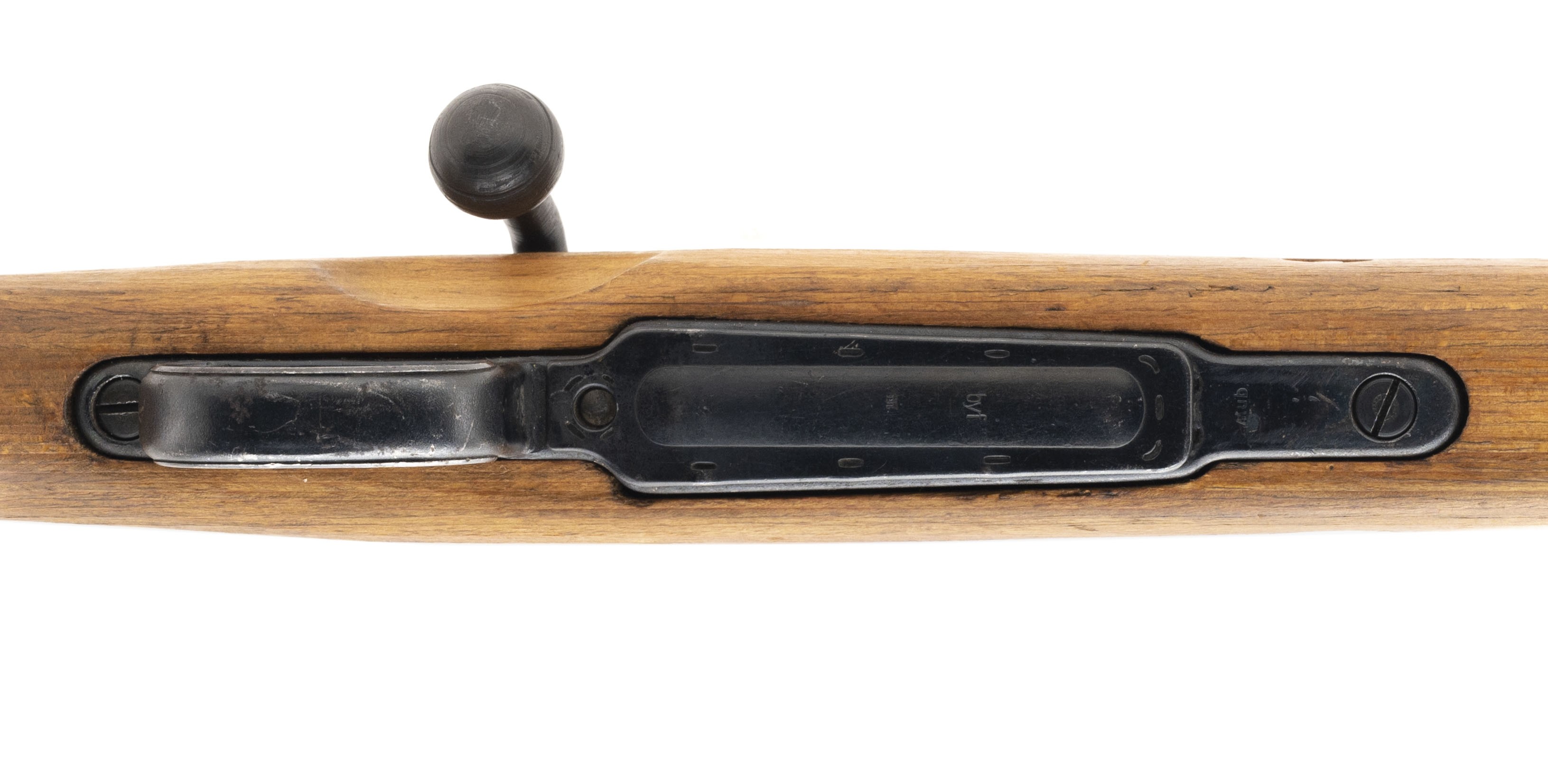 Scarce late war production dated 1945. Top of receiver is marked "BNZ 45". Bore is excellent. Bolt is non-matching and all other parts are un-numbered. Which on the late war guns is normal. Stock is near excellent with some very minor nicks or dings. Floor plate is marked "BYF" with eagle 135. Near excellent overall condition. A desirable K98.