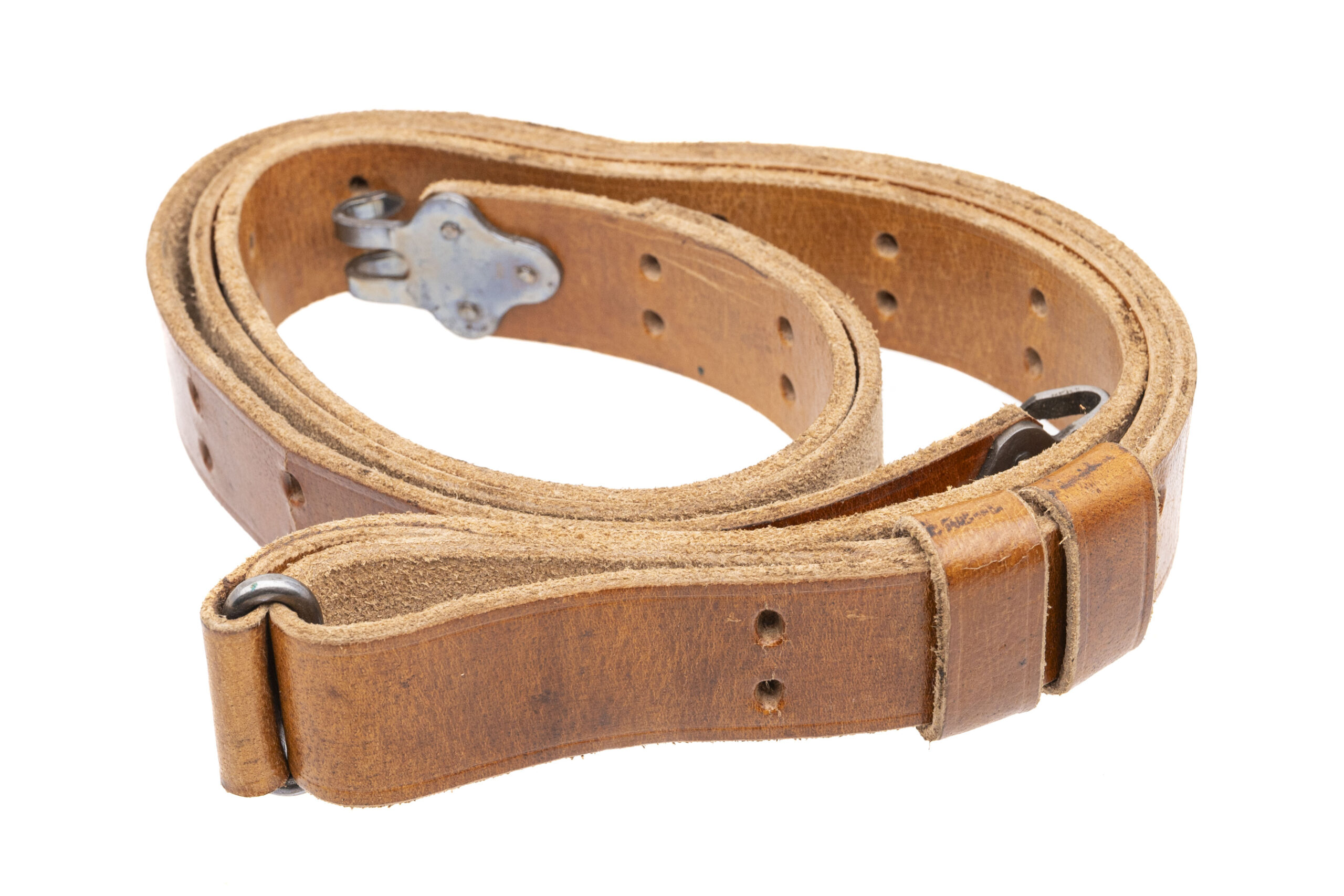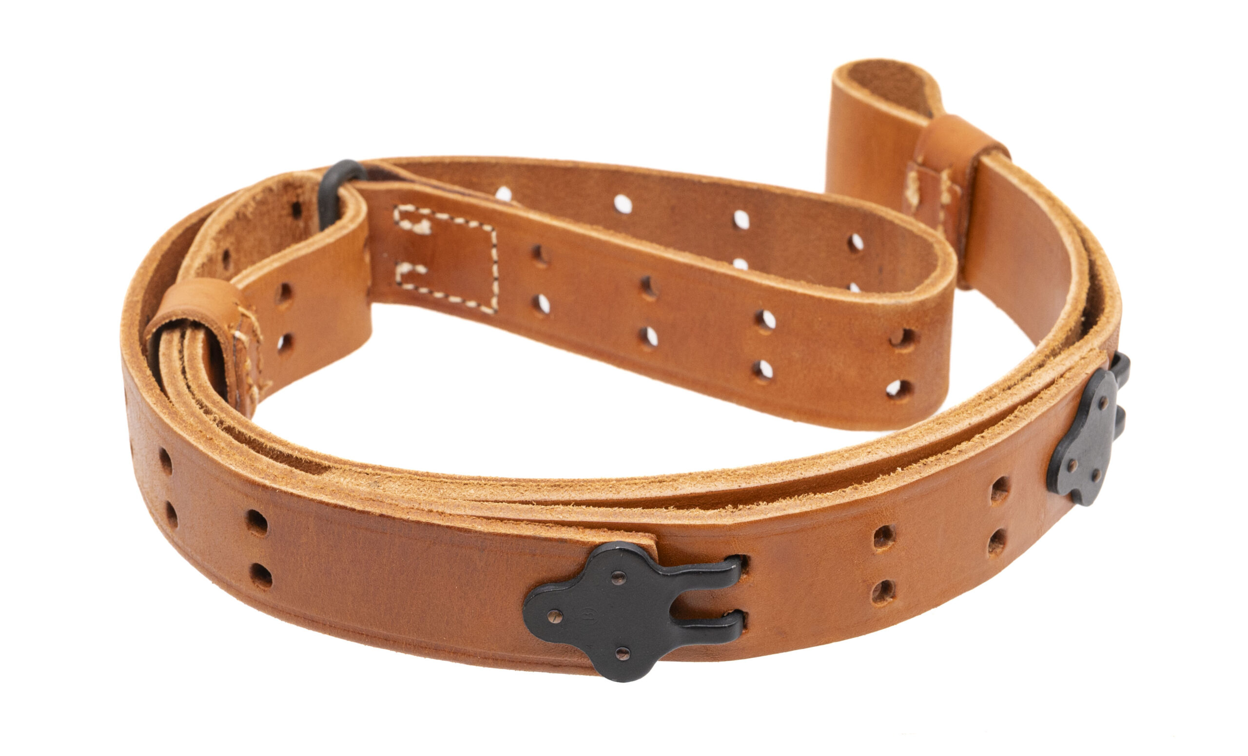 This lot includes a Springfield Armory, Inc. leather M1907 type sling for M1903/M1 Garand rifles, a USGI M1943 webbed sling for M1903/M1 Garand rifles, a 1942 dated webbed sling for the Lee Enfield rifle & two unmarked M1907 type leather slings for M1903/M1 Garand rifles.