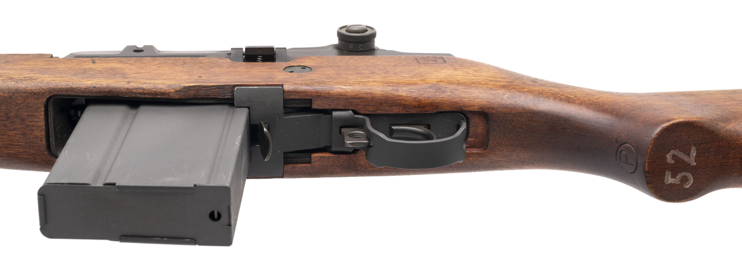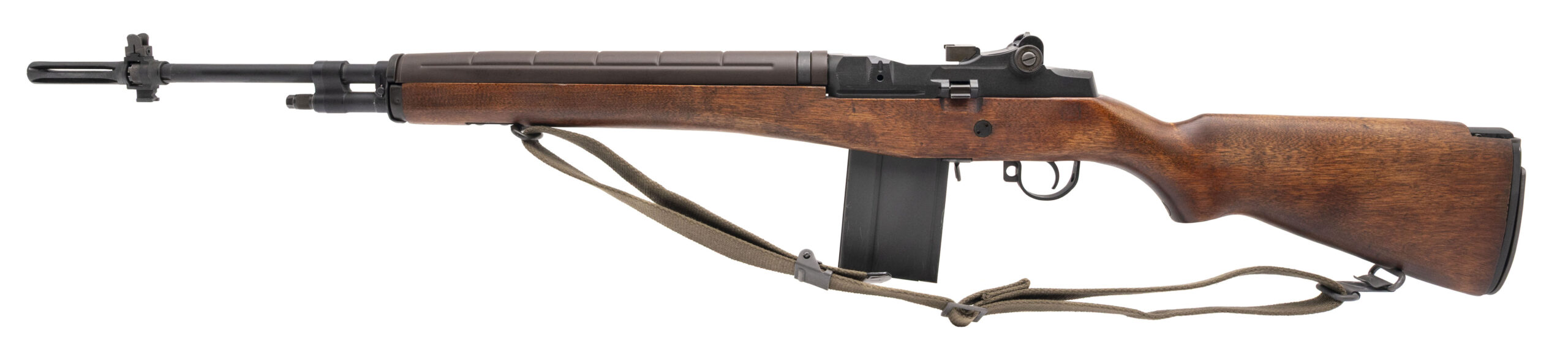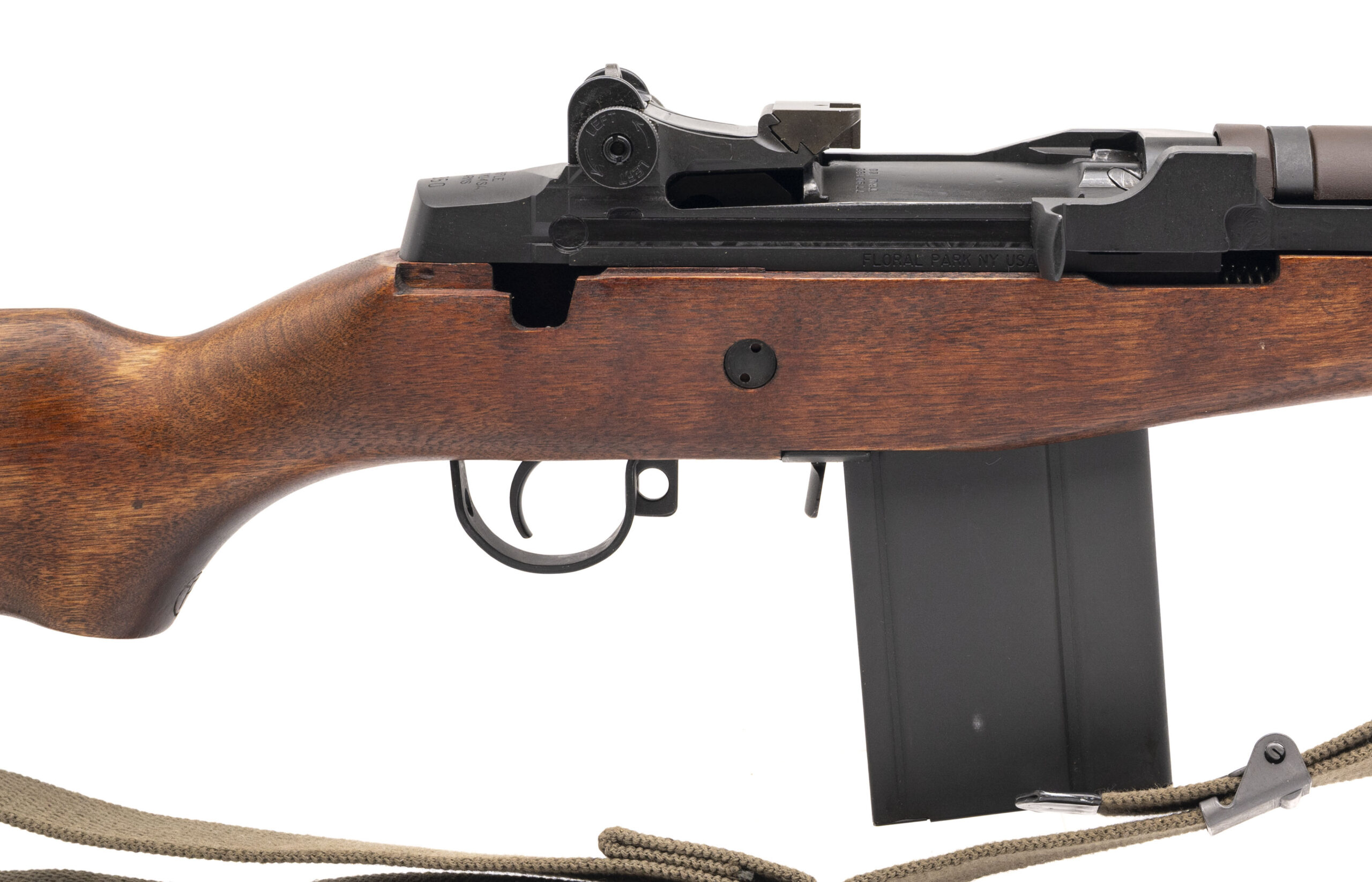 Serial number 04350. Made with a USGI Thompson Ramo Woolridge (TRW) bolt & 22-inch Criterion standard weight barrel that has a bright bore with strong visible rifling. Condition overall is excellent with original dull gray phosphate across the metallic parts & a premium quality USGI Defense Department Acceptance Stamp stock that has a circle non-serif P on the pistol grip. Comes with a USGI webbed sling, a USGI synthetic handguard & a USGI 20-round detachable box magazine.