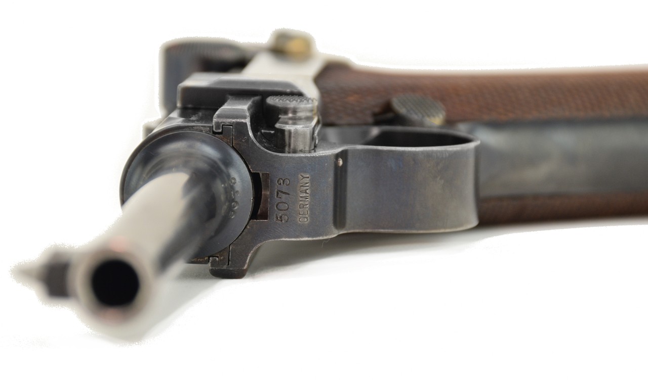Lugar DWM 1900 Commercial .30 LUGER caliber pistol. Excellent condition Luger. Hard to find 1900 commercial with matching numbers except magazine which is unnumbered. Gun has approximately 98% blue. Very good straw colors. Grips are excellent except for a very small dent in the checkering on right side grip. Bore is excellent. Very fine 1900 commercial.