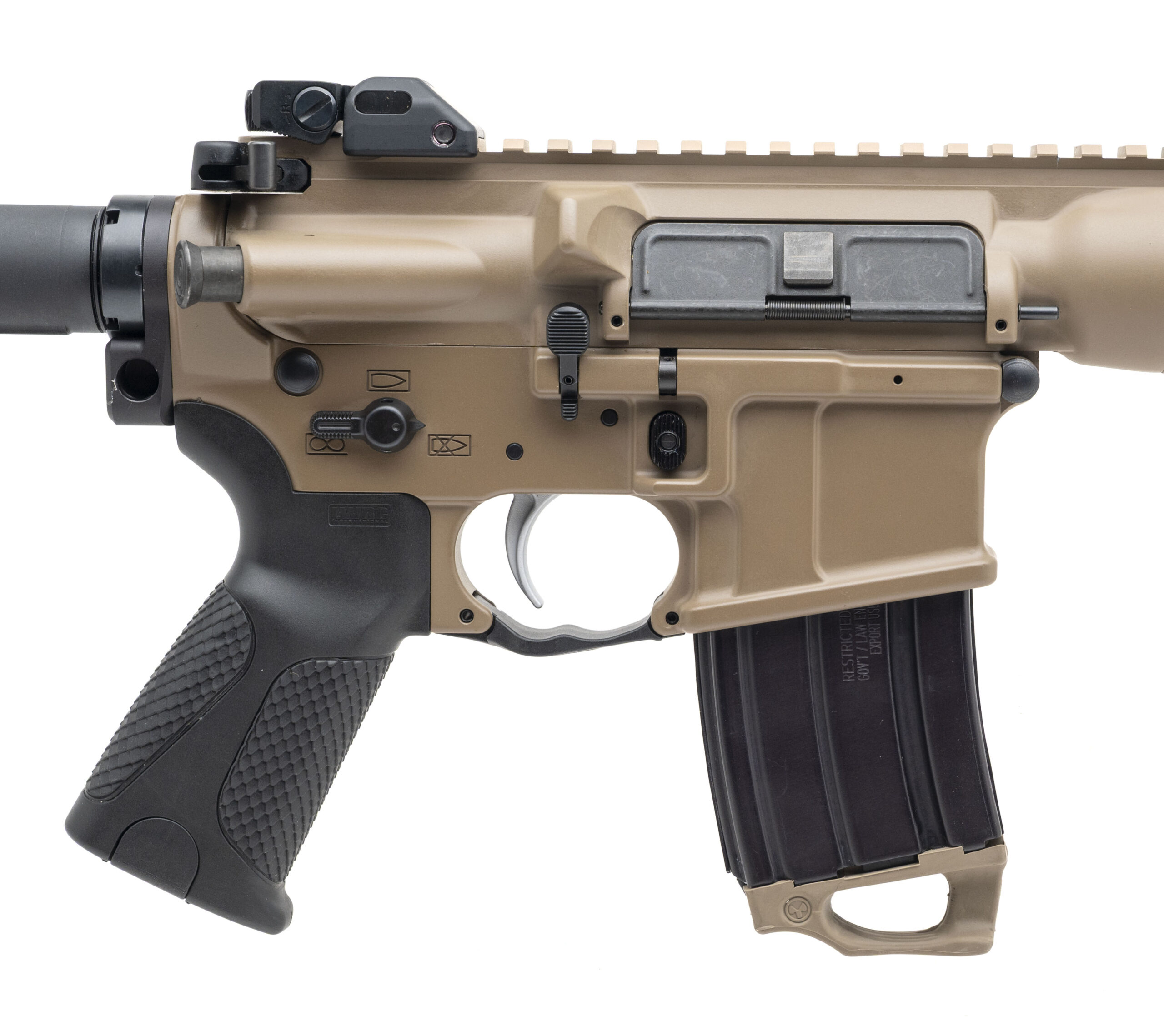 SN: 24-69243. Modern production, 5.56 with a 16.1" spiral fluted barrel. Bore is bright with strong rifling. Piston driven tactical rifle with an FDE cerakote finish, flip-up sights, and full ambidextrous controls. Excellent condition overall with box.
