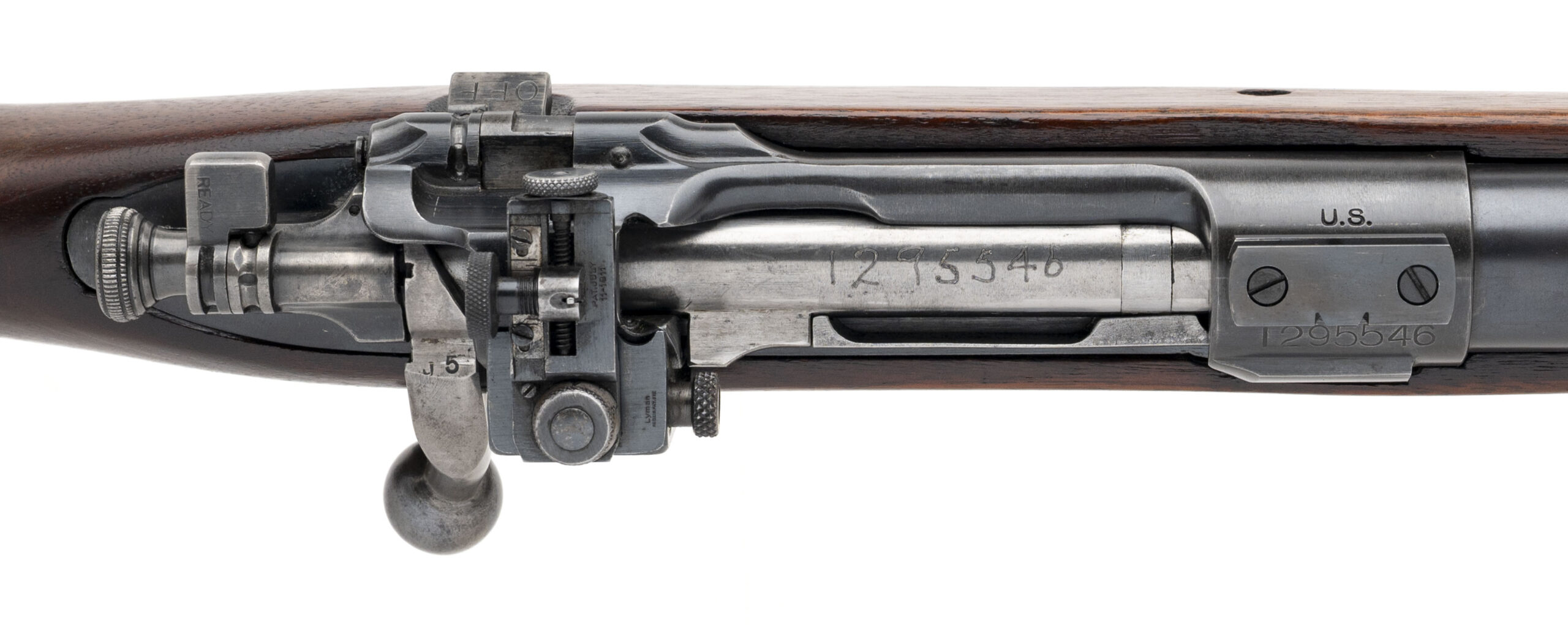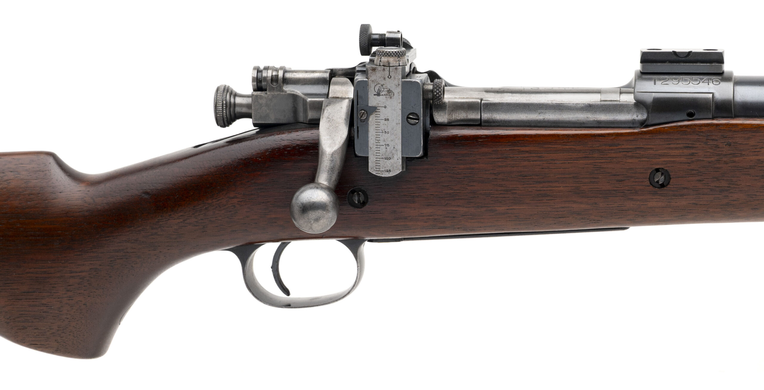 Serial Number 1295546. Made in 1928 with a June 1928 dated 24-inch Springfield Armory star gauged National Match barrel with a bright bore that has strong visible rifling. The polished bolt is electro pencil numbered to the receiver serial number. Rifle is equipped with the Lyman 48C receiver mounted target type micrometer rear sight assembly & the stock is in excellent condition with a sans serif "P" on the front of the pistol grip. The receiver is drilled & tapped with a short base over the Springfield Armory roll mark & another shorter base 8-inches in front of that. Comes with a checkered butt plate. This rifle is one of 4496 examples of the M1903 Sporter made by Springfield from 1923 to 1938 & then sold to National Rifle Association members.