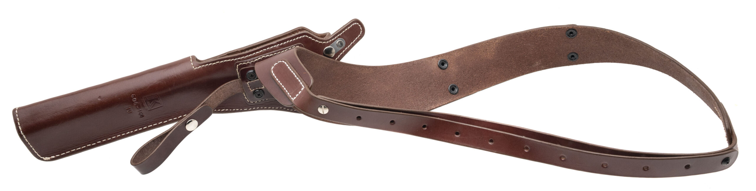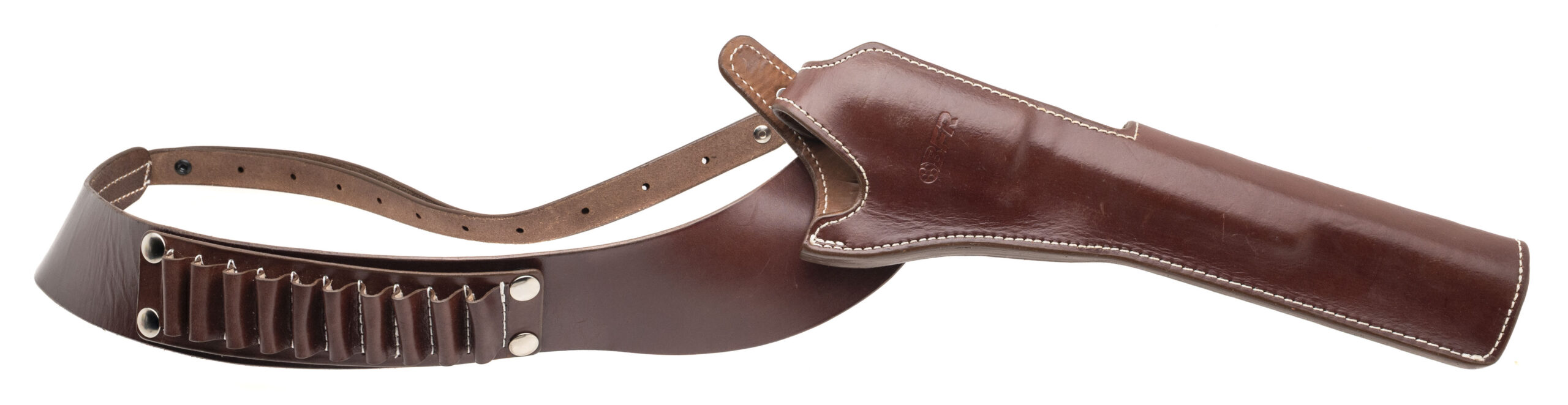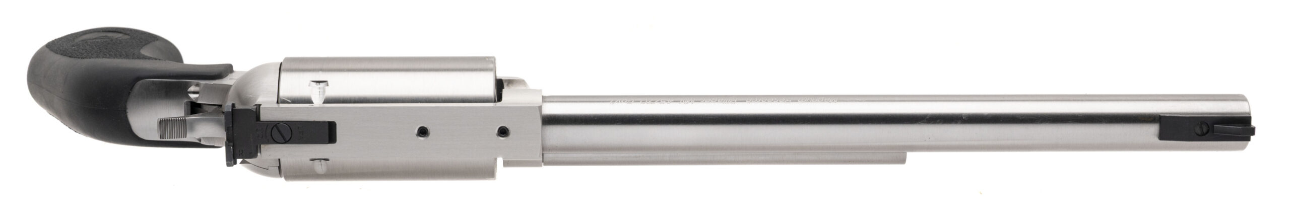 SN: BR19686. Modern production, .45-70 GOVT. with a 10.6" barrel. Bore is very good. Stainless steel single-action only large frame revolver with an adjustable rear sight, 5rd cylinder, and Hogue rubber grips. Metal shows minor handling marks throughout. Overall condition is very good. Includes Triple K #606 leather Bandolier Holster.