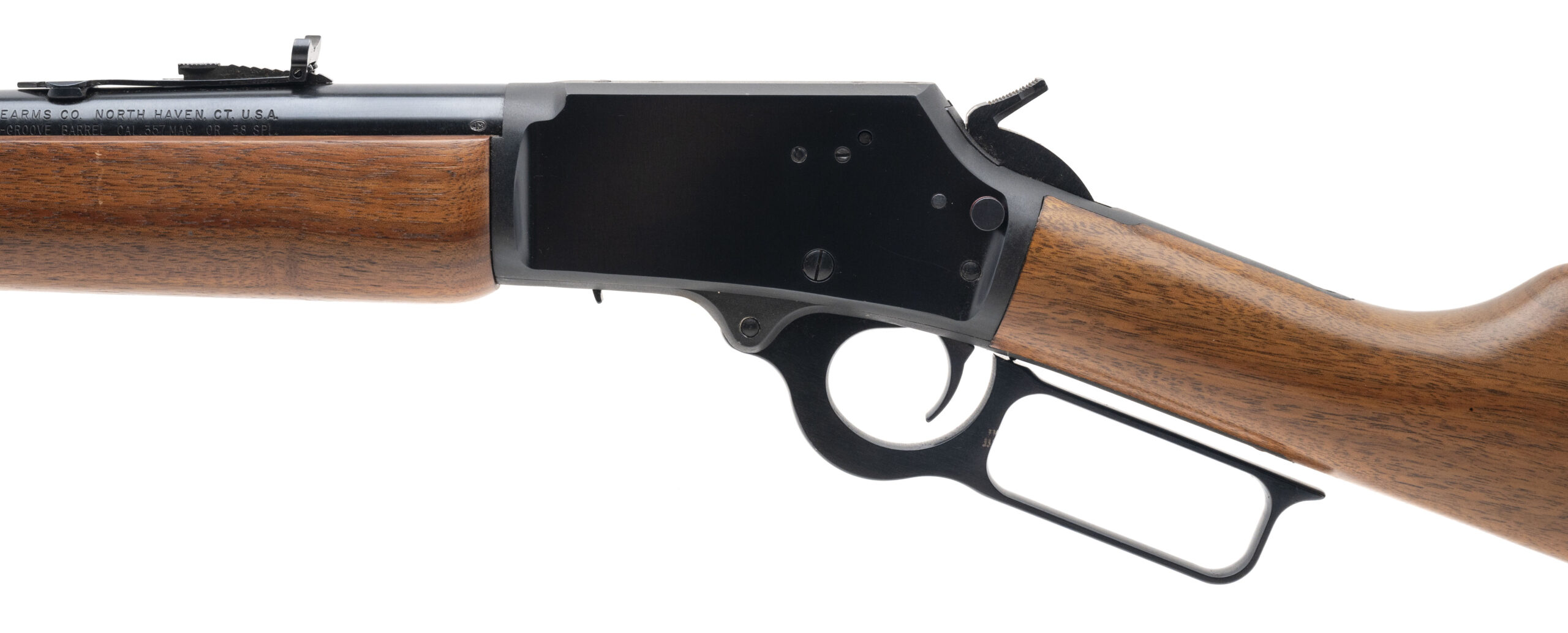 SN: 08010464. Made in 1999, .357 Magnum/.38 Special with a 18.5" barrel. Bore is bright with strong rifling. JM marked lever action rifle with side gate. Finish and stock are in very good condition. Comes with box. Overall very good condition.