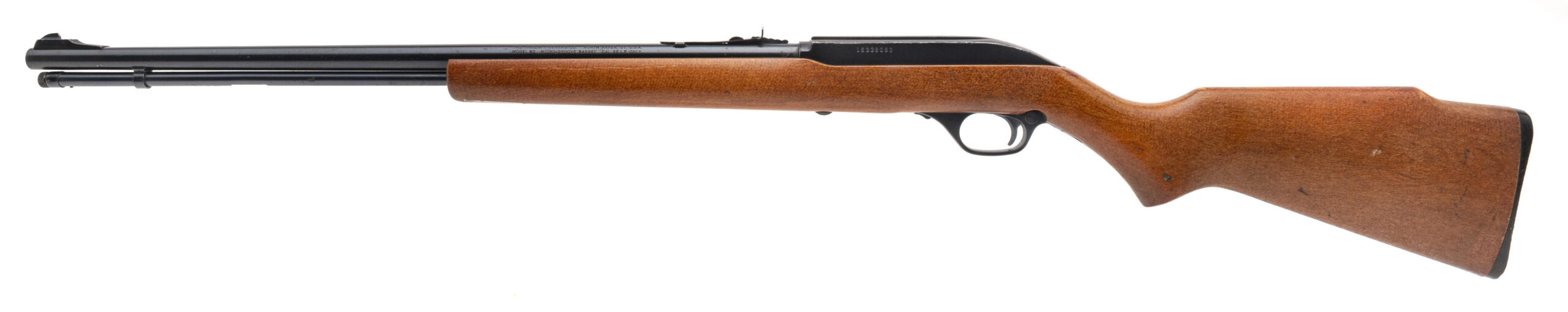 sn: 15338093 1970's vintage 22lr semi-auto rifle, tube fed with a 22" JM stamped Micro-Groove round barrel, ramped front sight, dovetailed rear sight in a wood stock with original butt plate. Some light handling marks on the furniture and some speckling throughout the bluing with edge wear on the receiver, bore is excellent.