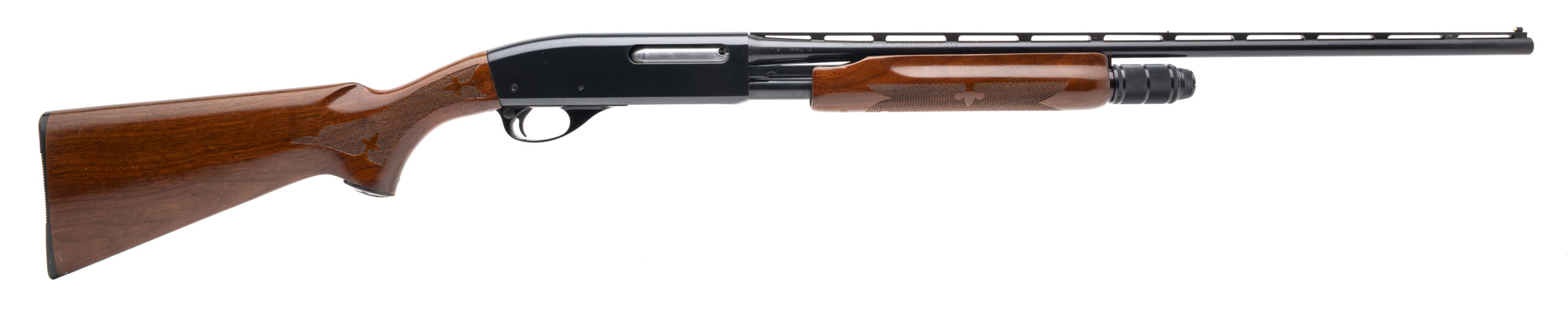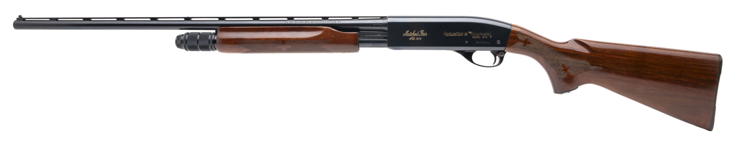 SN: S073373H & S079244J made in 1969. 1 of only 1500 matched pairs of Remington 870’s. 410 and 28 gauge pump action shotguns with 25” vent rib barrels, fixed skeet chokes and 2 ¾” chamber on the 28ga, 3” for the 410. Both feature factory magazine cap weights and checkered walnut furniture with a 14” LOP to the original butt plates. Engraved with gold inlay on each gun “Matched Pair No. 806”. Overall in very good condition, very rare and desirable set.