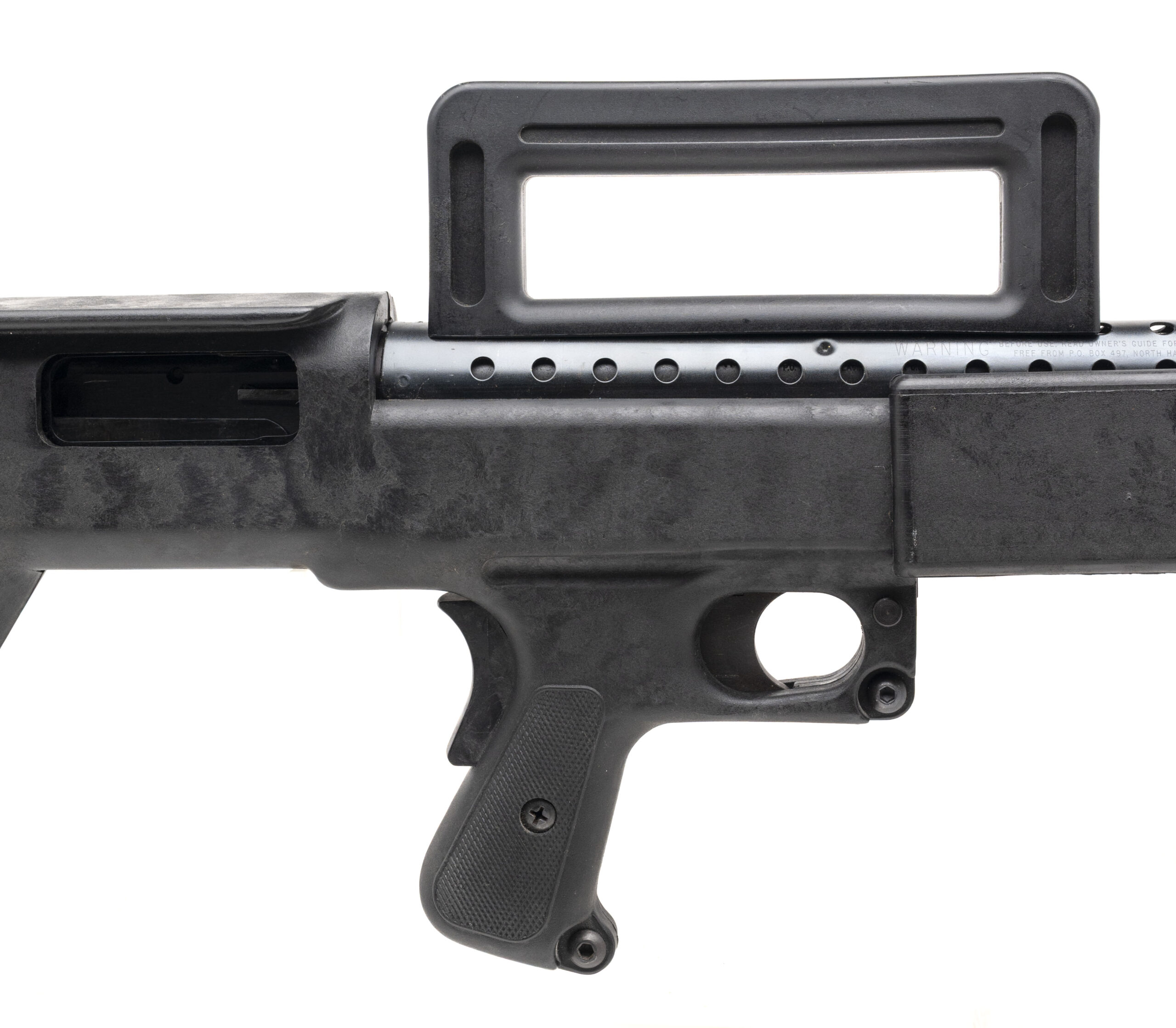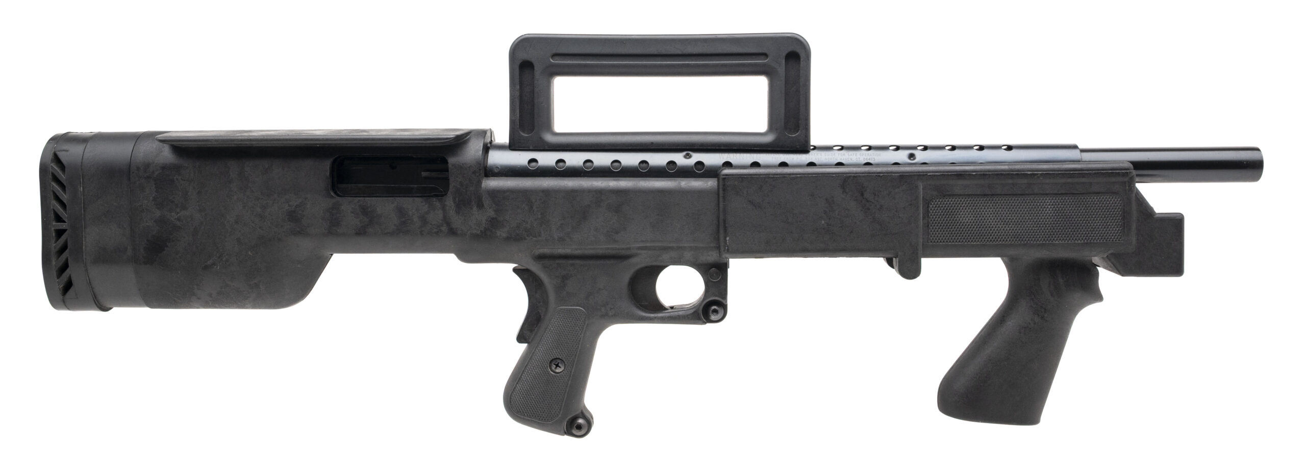 SN: MV47210C. 1990s vintage, 12 gauge with an 18.5" barrel chambered for 2 3/4" & 3" shells. Bore is very good. Pump-action bullpup tactical shotgun with a grip safety, carry handle, perforated heat shield, matte black finish, and molded polymer stock with a 15" LOP. Finish & stock show light marks. Overall condition is very good.