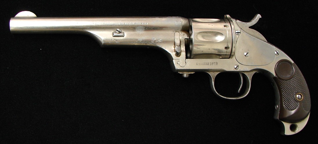 Merwin and Hulbert 1st Model Open Top .44-40 caliber revolver. Very fine condition. Gun has 85% original nickel but has the appe (AH2893)