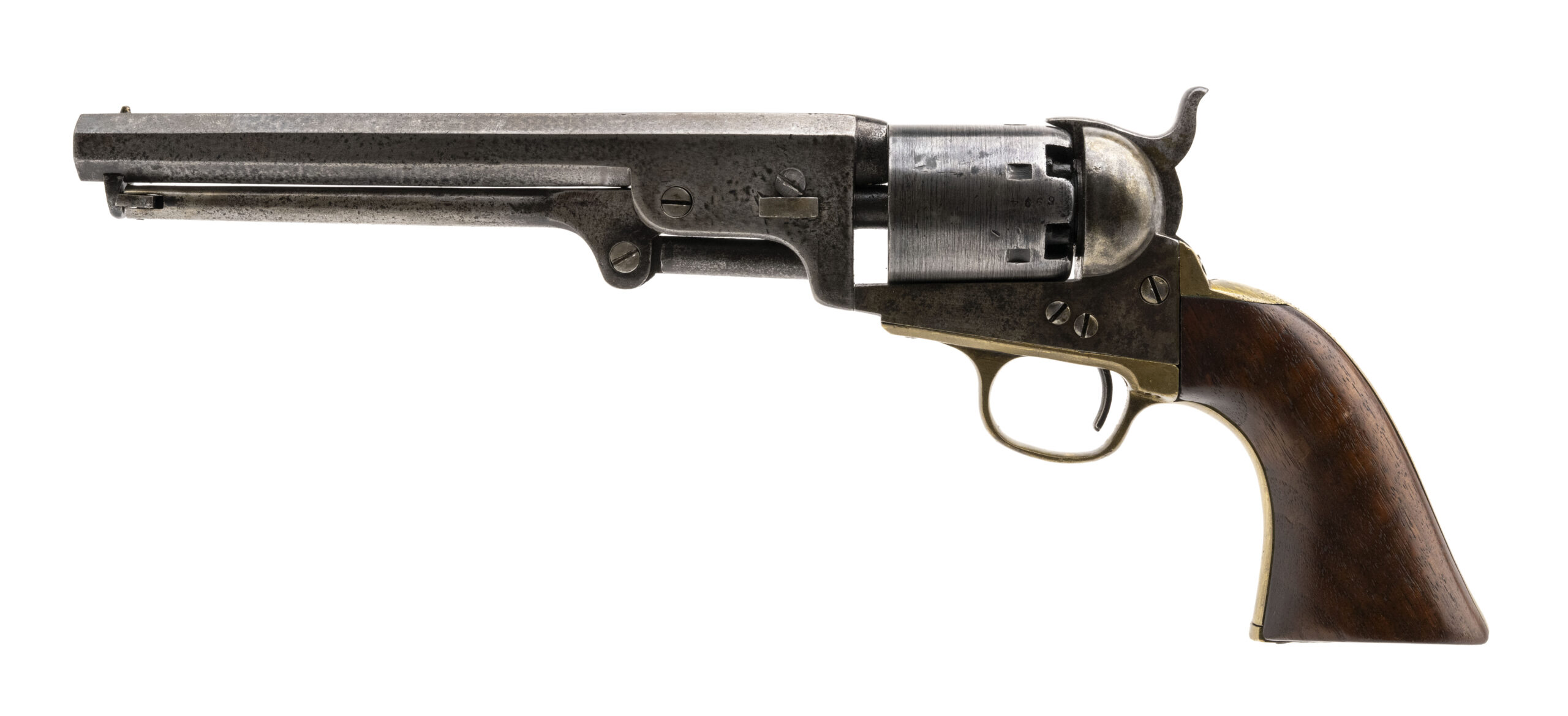 Serial number 6994. Made circa 1865 -1866. 36 caliber with a 7 ½” barrel. The metal has a gray patina. The cylinder has been cleaned. The grips are very good. Action works perfectly.