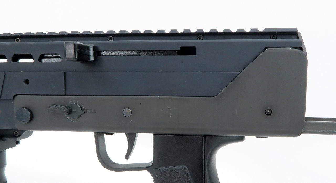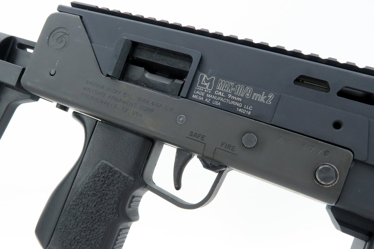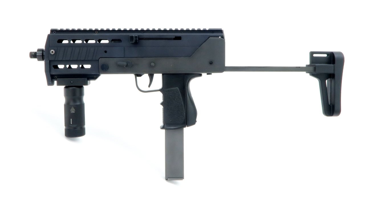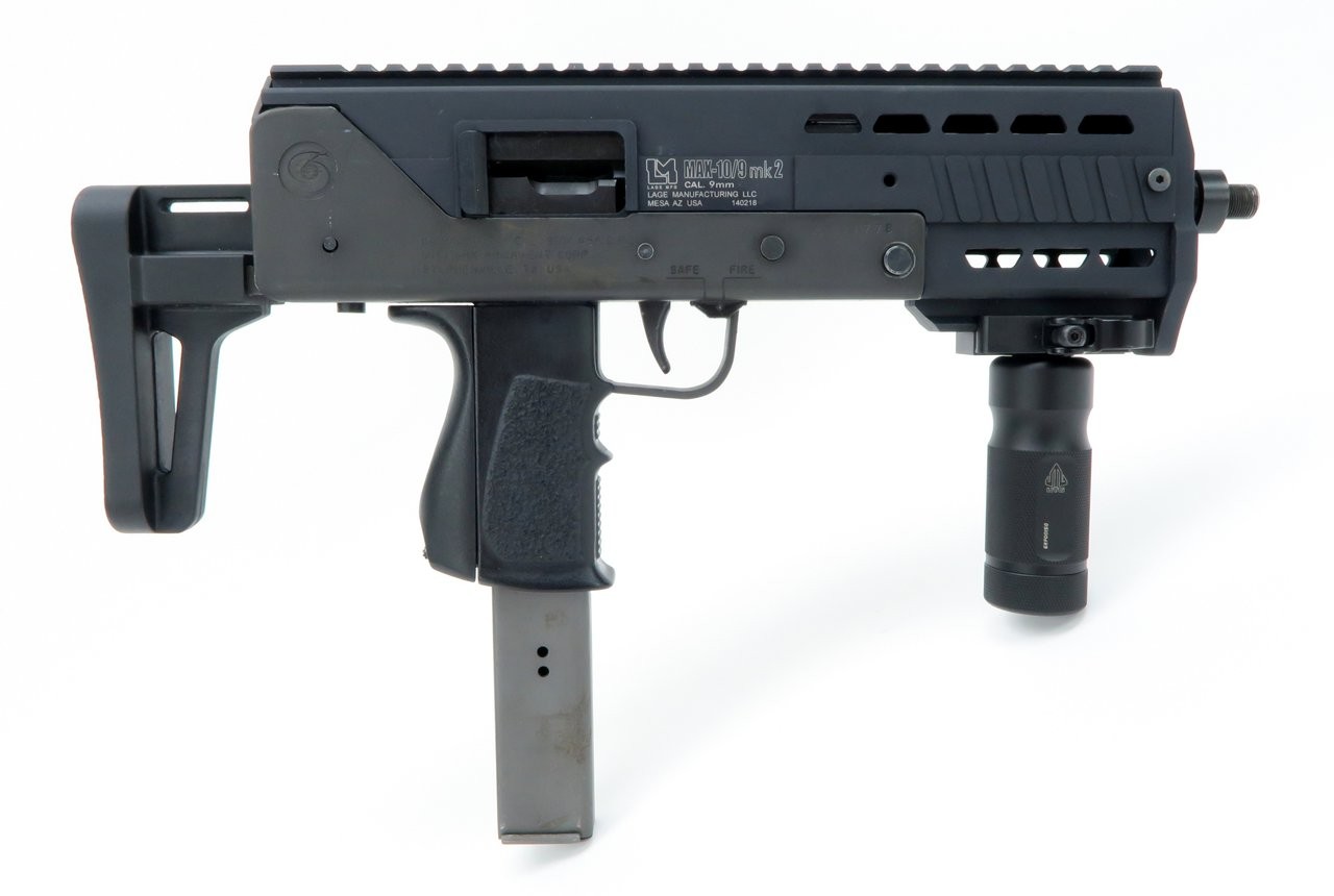 Military Armament corp. M10 A1 9mm. Mac 19 machine gun with Lage upper. ½ x29 threat pitch barrel and MP7 style stock.