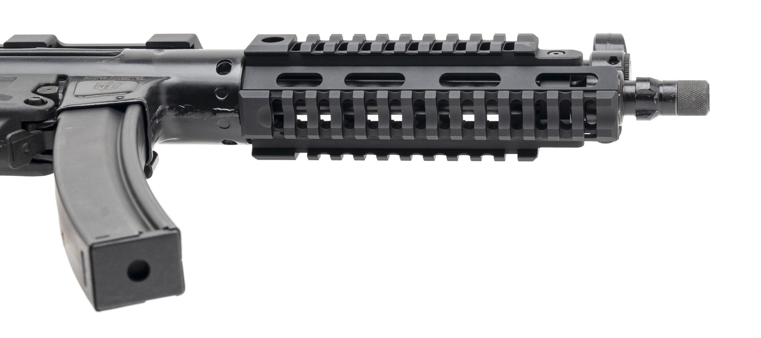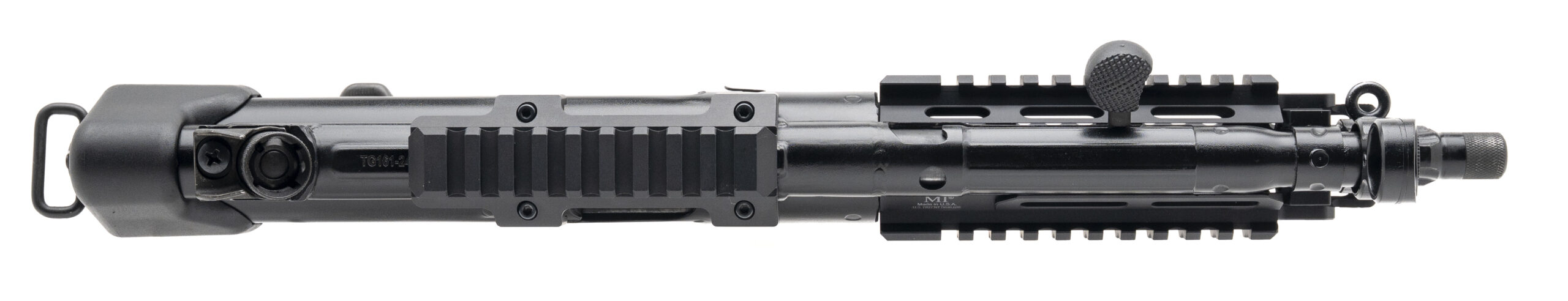 SN: TG161-24AC03755. Modern production, 9mm with a 8.9" threaded/tri-lug barrel. Bore is excellent. Semi-auto tactical pistol with a Midwest Industries Picatinny optic rail & tri-rail handguard, and matte black finish. Finish shows minor handling marks, most notably to the left side of the receiver. Includes an additional 30rd magazine, original handguard, original flash hider, sling, and original case. Overall condition is very good.