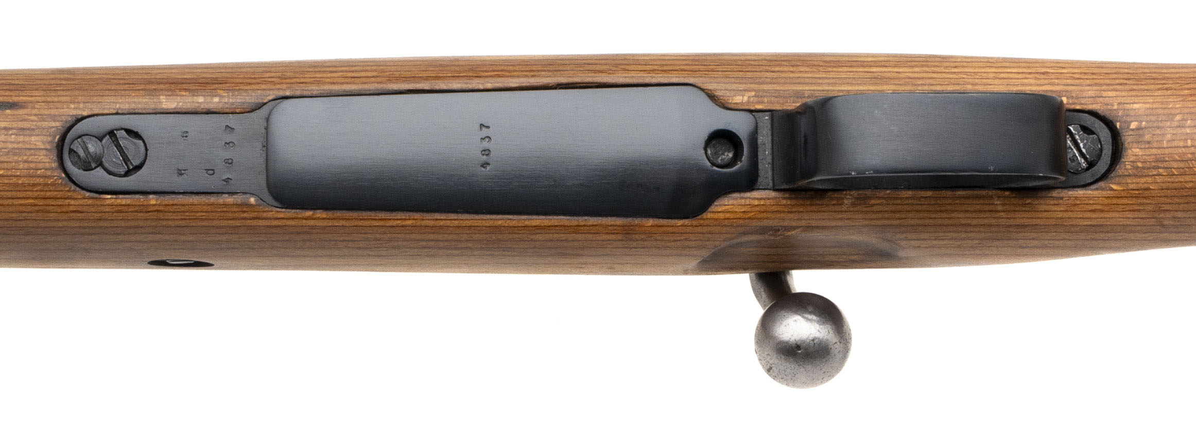 Serial Number 4837e. Made in 1940 by Berlin-Lubecker Maschinenfabriken with a 24-inch barrel that has a bright bore with strong visible rifling. This is a "Mitchell's Mausers" conversion of a Russian capture Kar98k, so the bolt is "in the white" & the other metallic parts have all been refinished. The wood has also been refinished & force numbered to the gun's serial number. There are import marks on the left side of the barrel. Comes with a 10.5-inch cleaning rod.