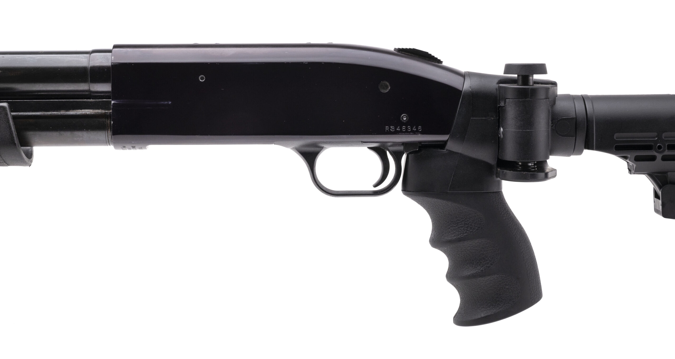 SN: R348346. Modern production 12 Gauge with an 18" Cylinder bore barrel. Bore is bright. Pump-Action shotgun. Finish is in very good condition with some wear along barrel and receiver. Polymer stock and forend are in in very good condition with some handling wear. Comes with ATI folding stock and pistol grip.