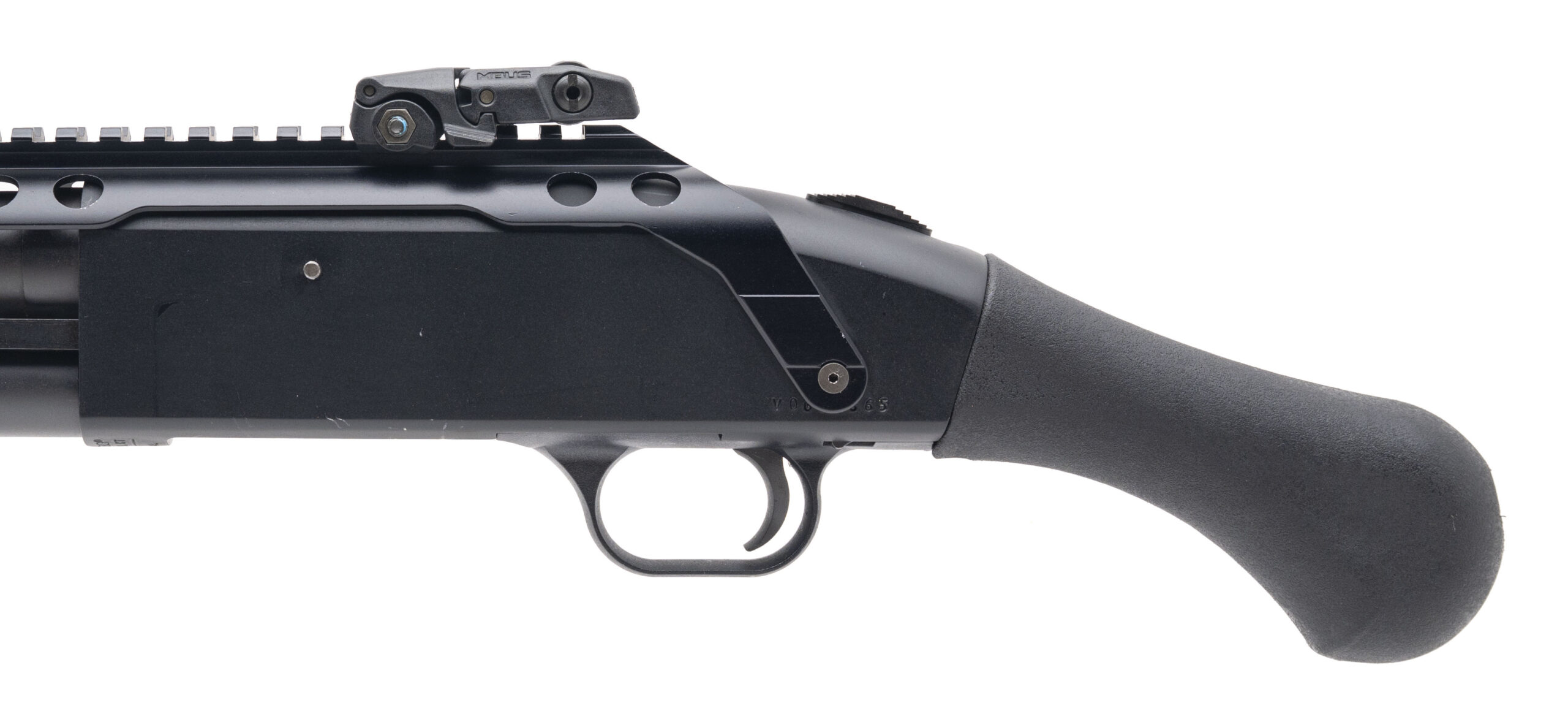SN: V0636865. Modern production, 12 Gauge with a 14.5" barrel. Pump action tactical shotgun with a Black Aces quad rail equipped with an Hi-Lux Micro-Max b-Dot red dot optic & MBUS pop up sights. Overall condition is very good.