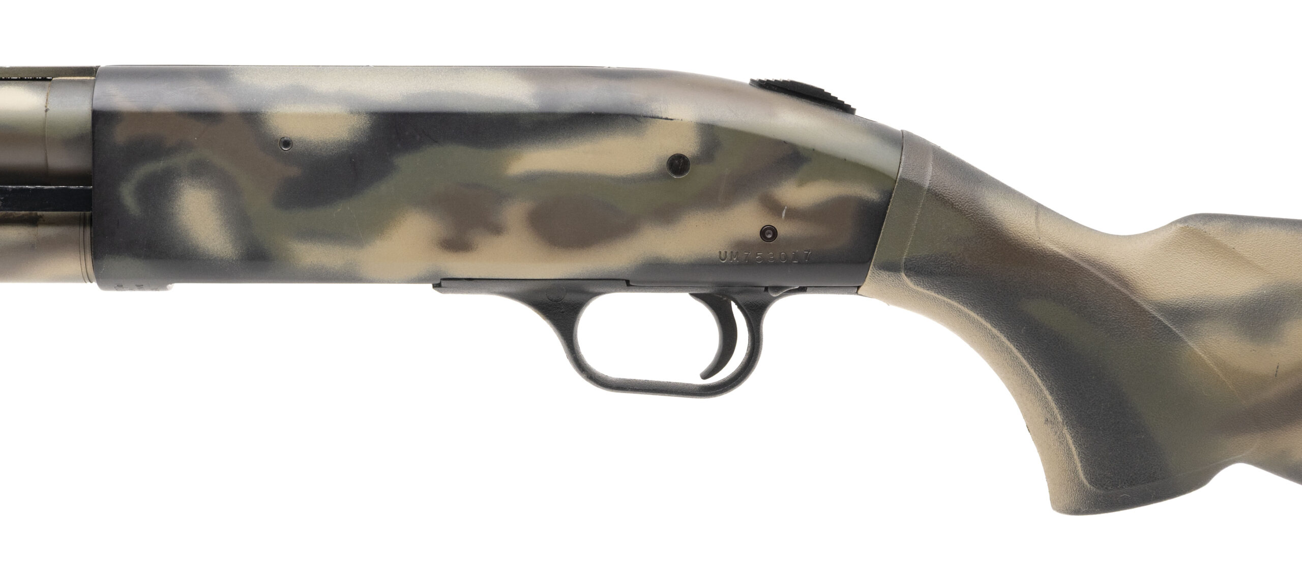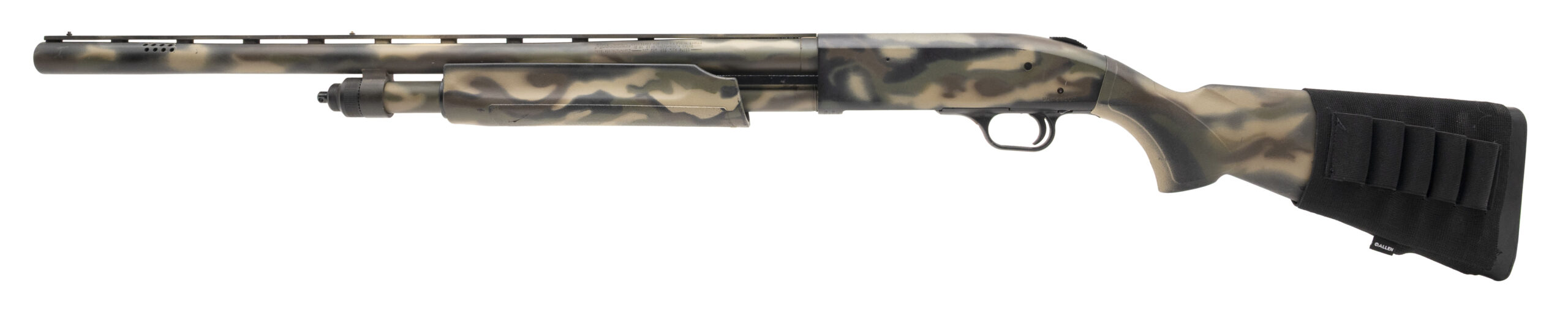 SN: UM753017. Modern production, 12 gauge with a 24" vent rib ported barrel chambered for 2 3/4", 3", & 3 1/2" shells w/removable cyl. Accu-Mag choke (Note: Not for use with slugs). Bore is very good. Pump-action field shotgun with custom camouflage finish. Finish shows minor handling marks throughout. Includes shell holder. Overall condition is very good.